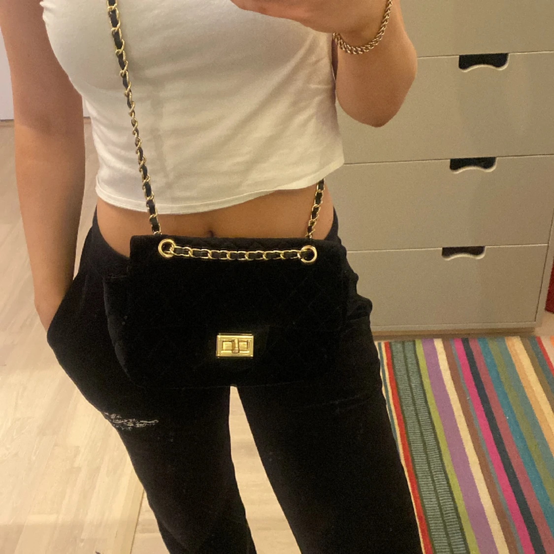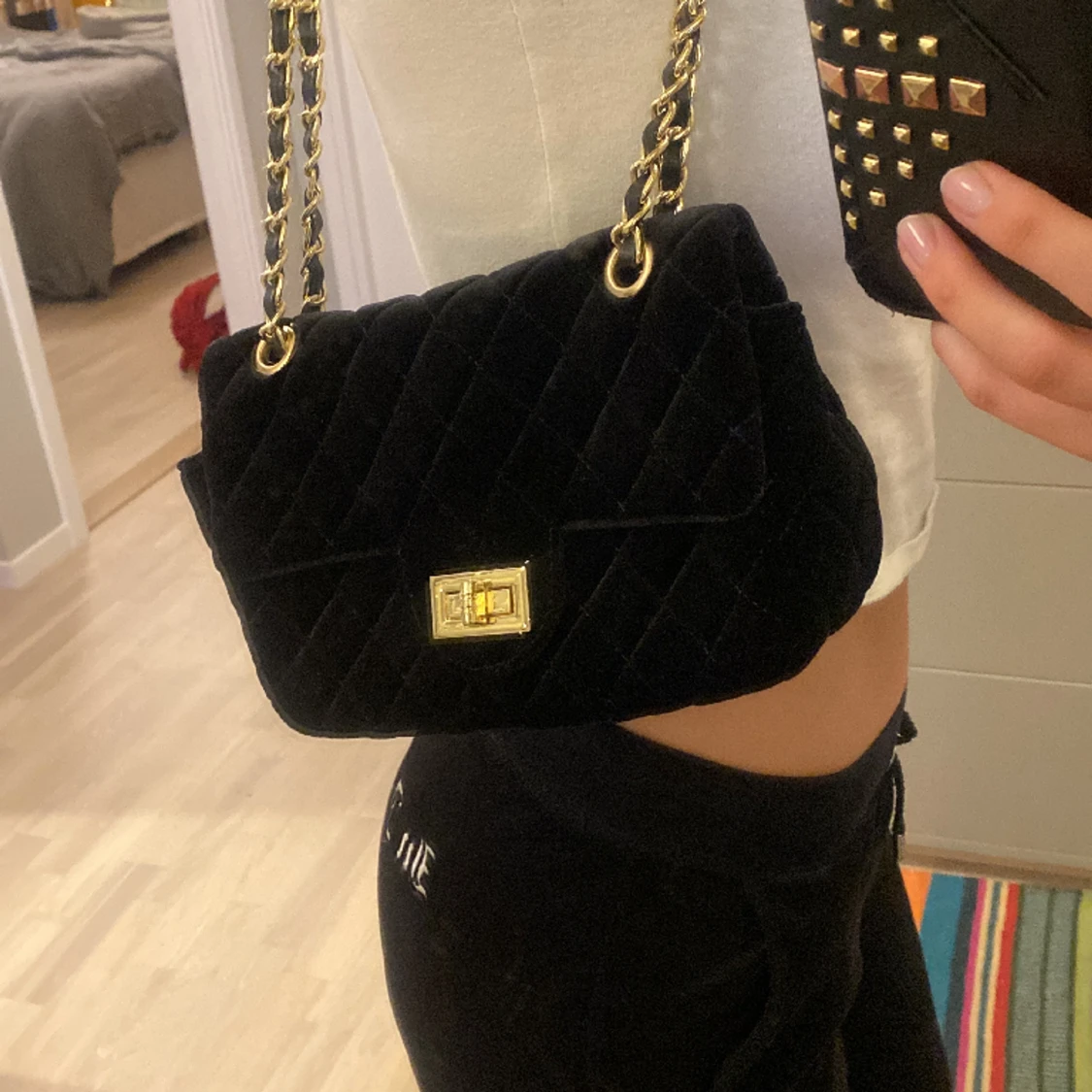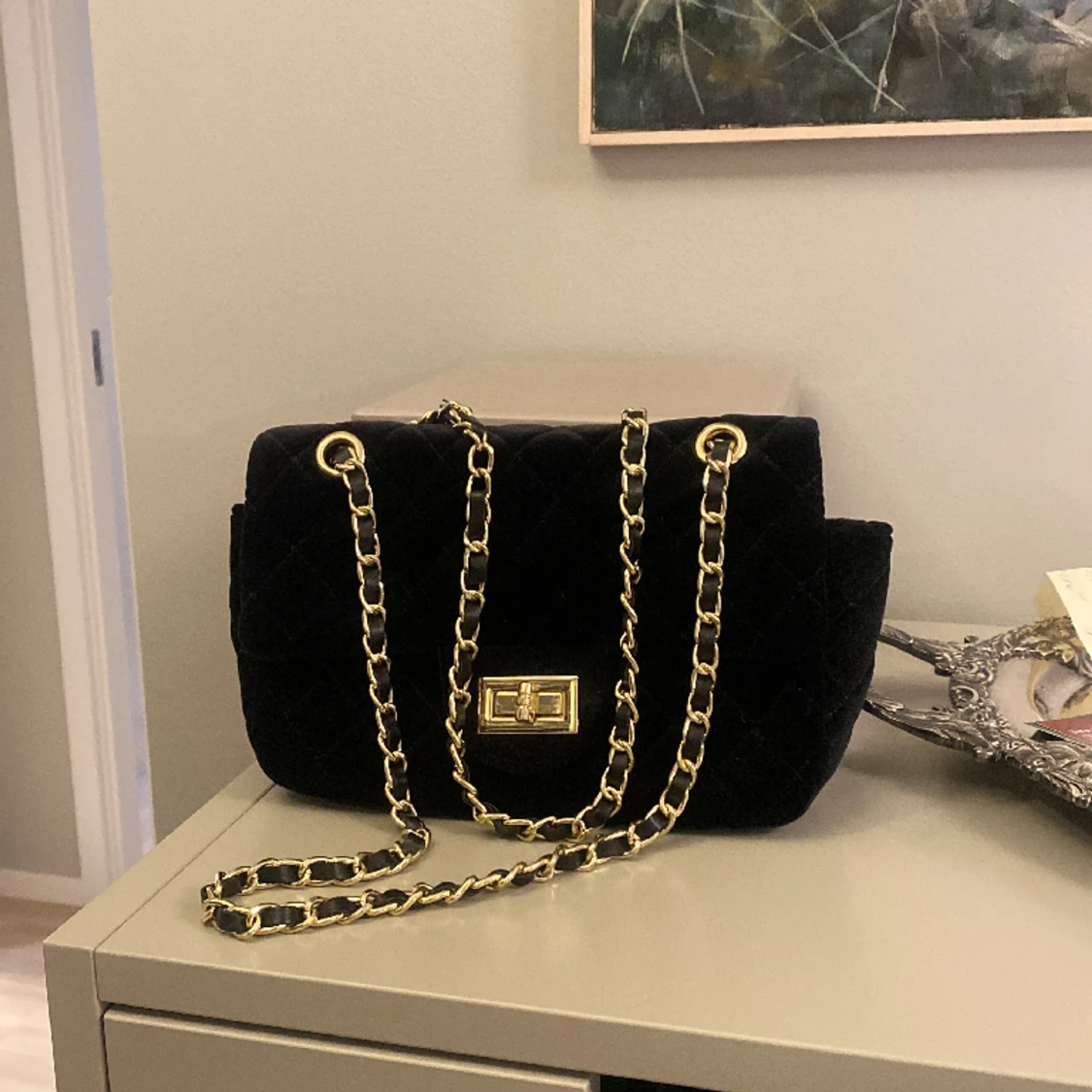 Handväska som går att ha båda med långt eller kort (dubbelvikt) band, jättebra skick
