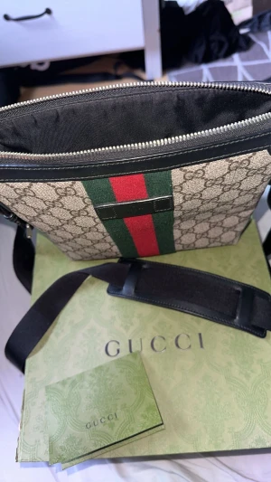 ÄKTA Axelremsväska från Gucci. Skick 10/10 endast använd 1 gång. Priset är diskuterbart vid snabb affär men inga skambud. Möts endast upp.