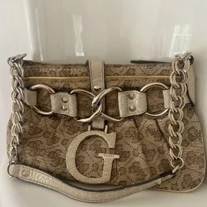 Vintage guess väska!  - Väska i märket ”guess” (ej äkta). Väskan är inte i toppen skick och har en del skador där färgen har gått bort. Väskan har gått igenom väldigt mycket och är väldigt gammal, därav priset😅 (Priset kan dock diskutera vidare)