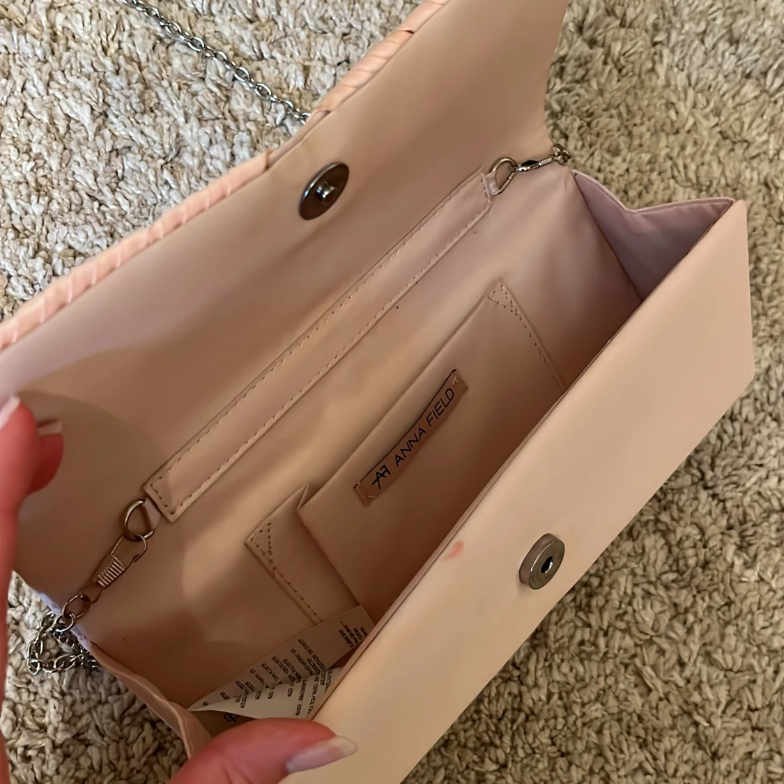 Rosa axelväska med silvrig kedja. Hur gullig som helst! (Passar även möjligtvis till balklänningen jag säljer) Liiiten mörkrosa fläck som syns på andra bilden, men skulle inte säga att det är något som stör💕