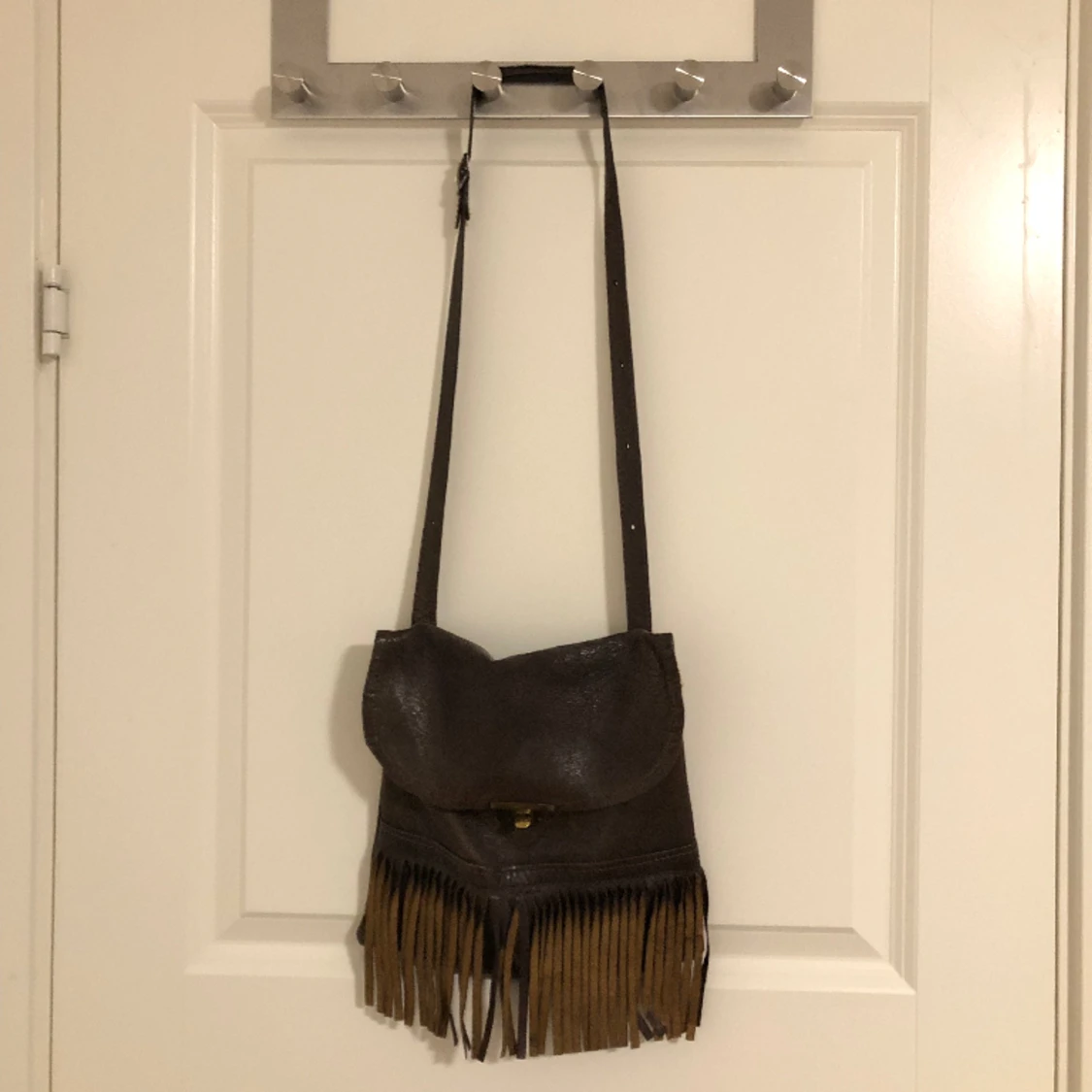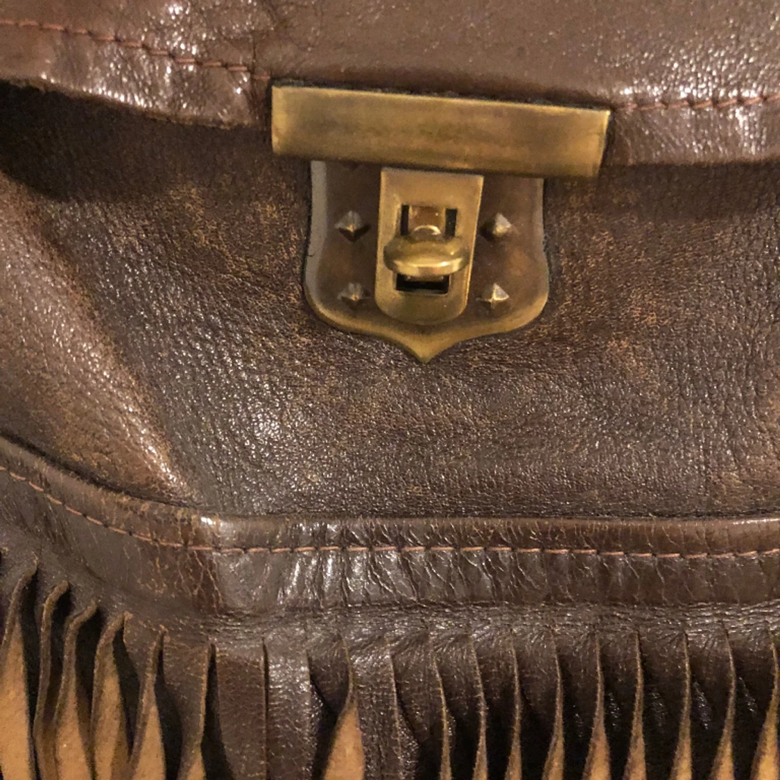 Fin och tidlös brun handväska med fransar. Stängs med ett spänne. Använt skick.