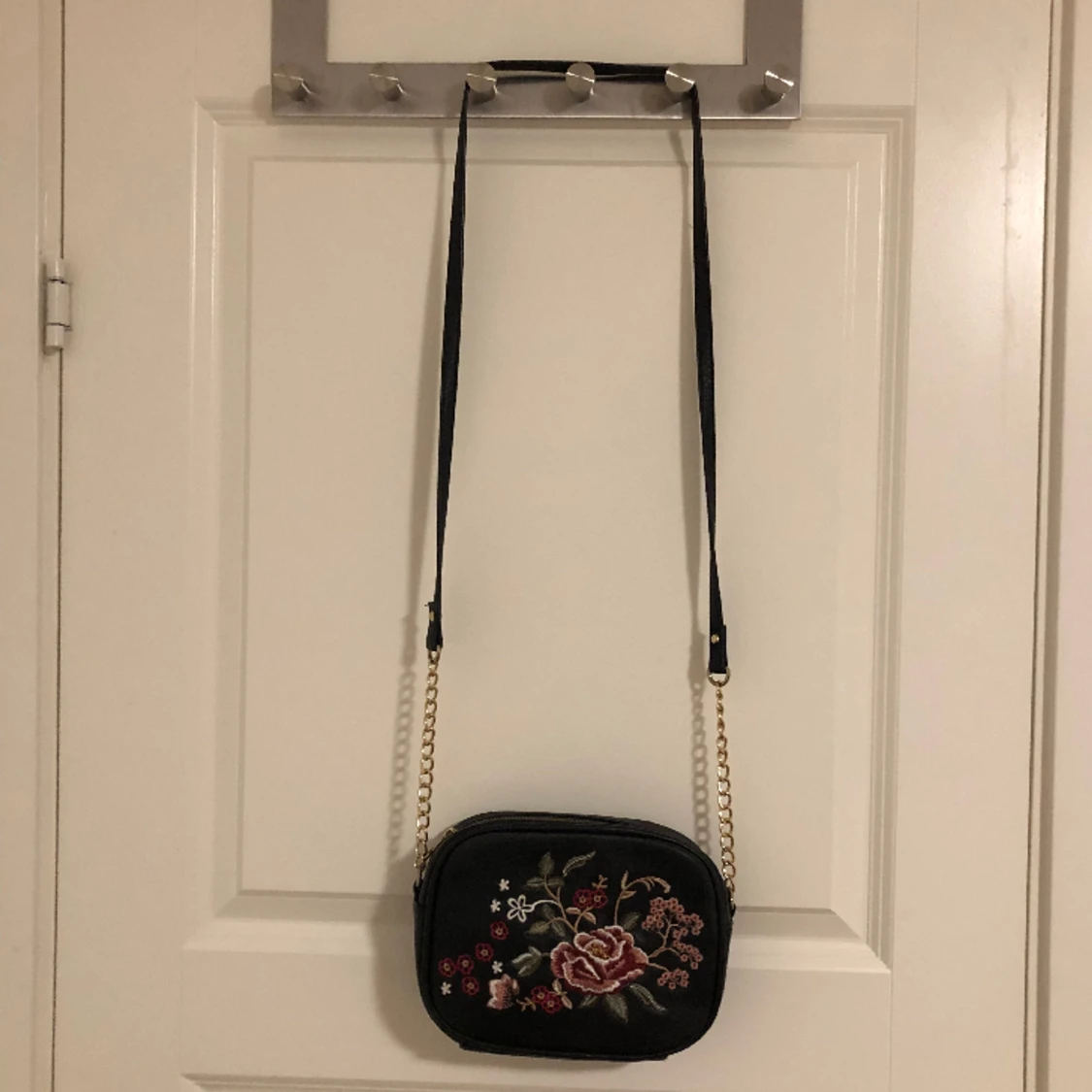 Superfin väska med broderade blommor framtill, stängs med dragkedja. Använt skick.