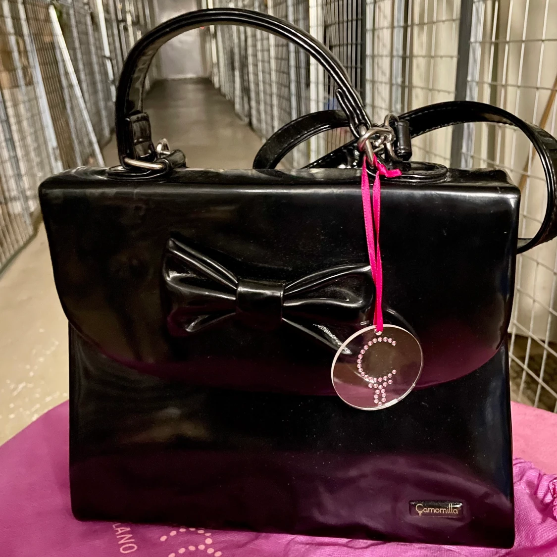 Söt blank väska med rosett från italienska märket Camomilla Milano. Stor modell så man får plats med mycket. Med axelband. Helt ny o oanvänd, tag kvar o dustbag medföljer. Perfekt julklapp! ✨