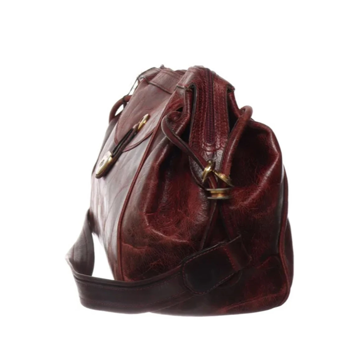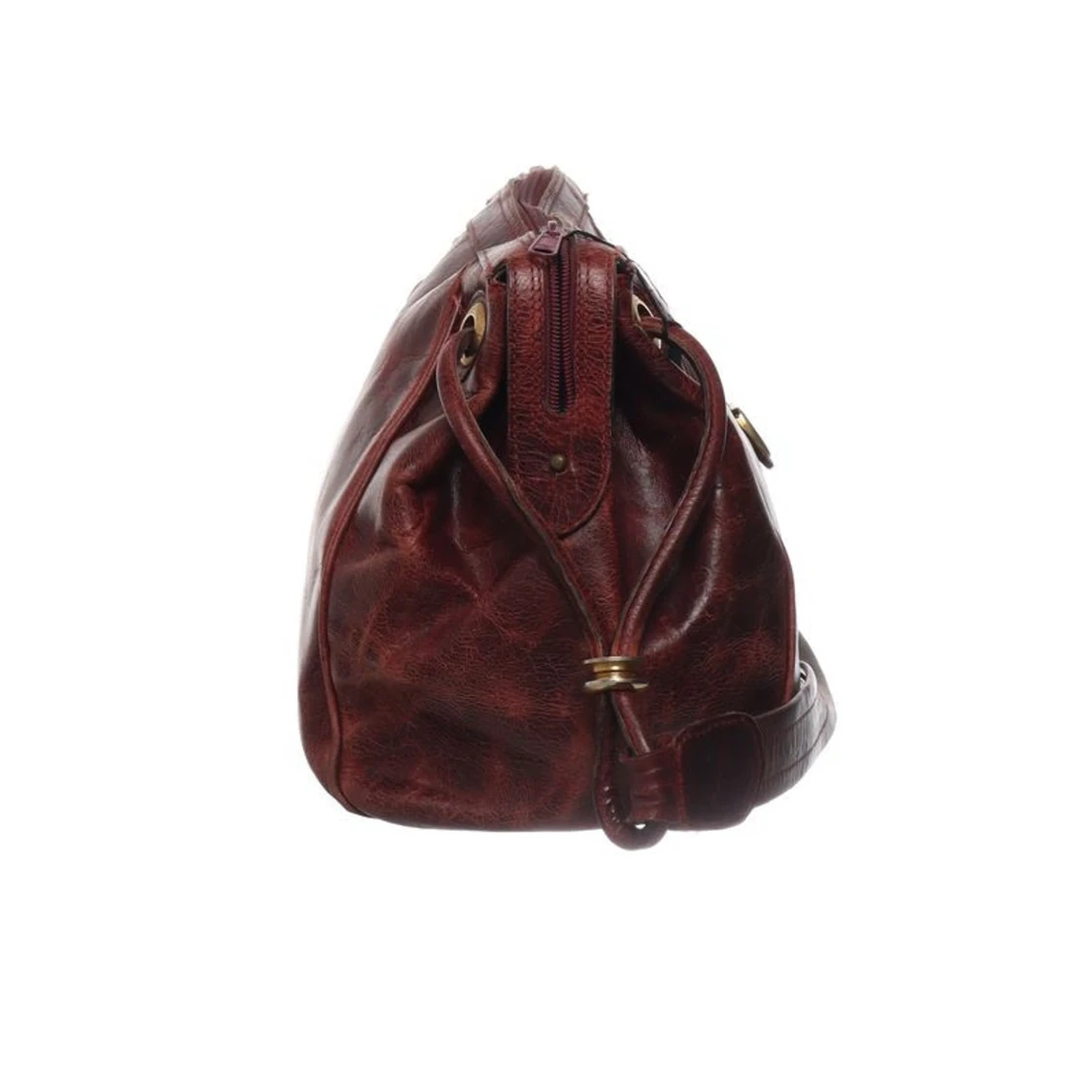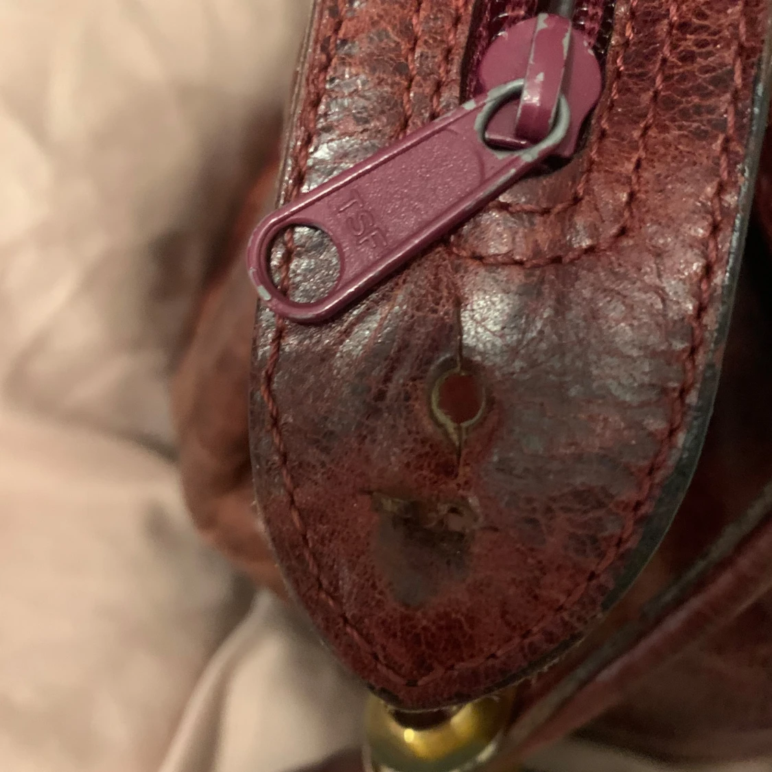 vinröd axelväska i skinn med dragkedja och dekorativa detaljer i metall. Väskan har en axelrem och dragkedja. Märket är La Tortue, finns defekter men gott skick Bredd:34cm Djup:15cm Höjd:25cm Skicka gärna prisförslag!