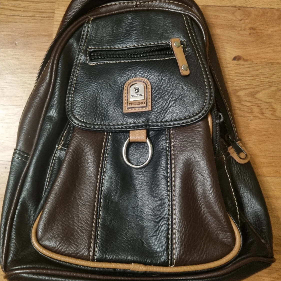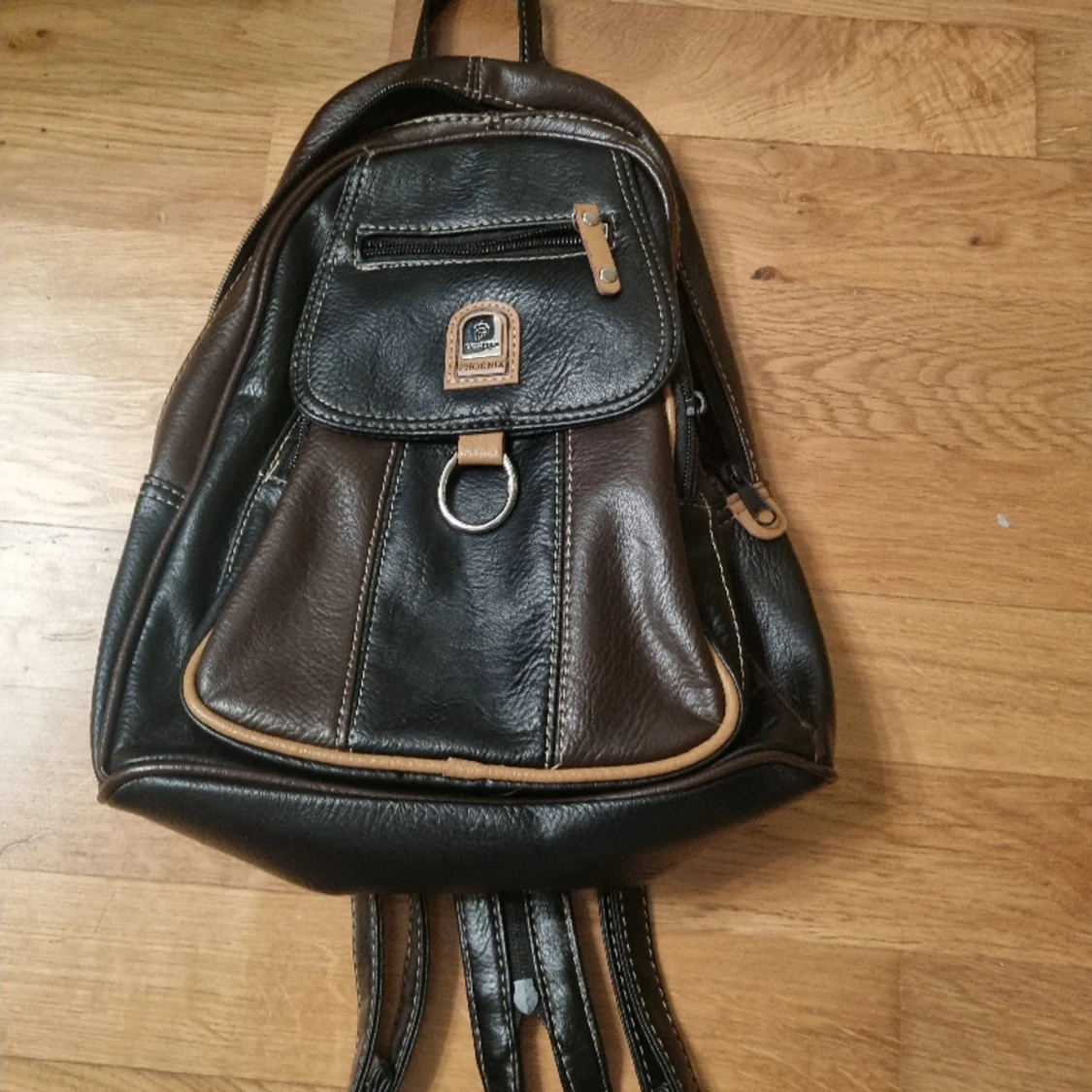 En svart och brun väska i bra skick. Går att med dragkedja justera till ryggsäck men även axelväska. Pris går att diskutera. :)