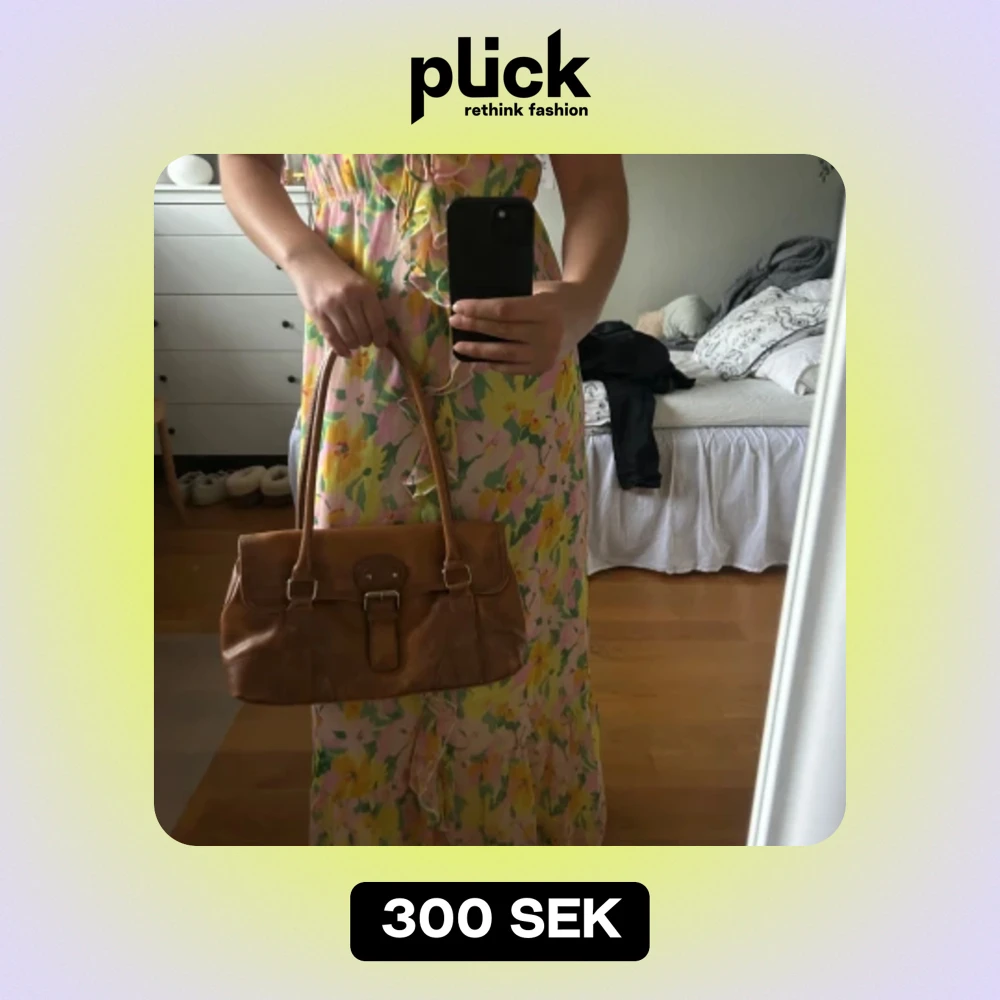 Brun vintage väska - Säljer denna fina väska då det inte kommer till användning! I så fint skick med snyggt mönster på den yttre sidan och så fin! Köpt på en secondhand för runt 300kr!
