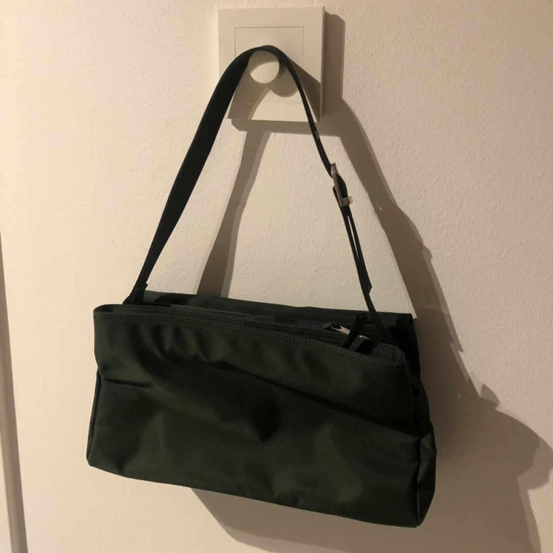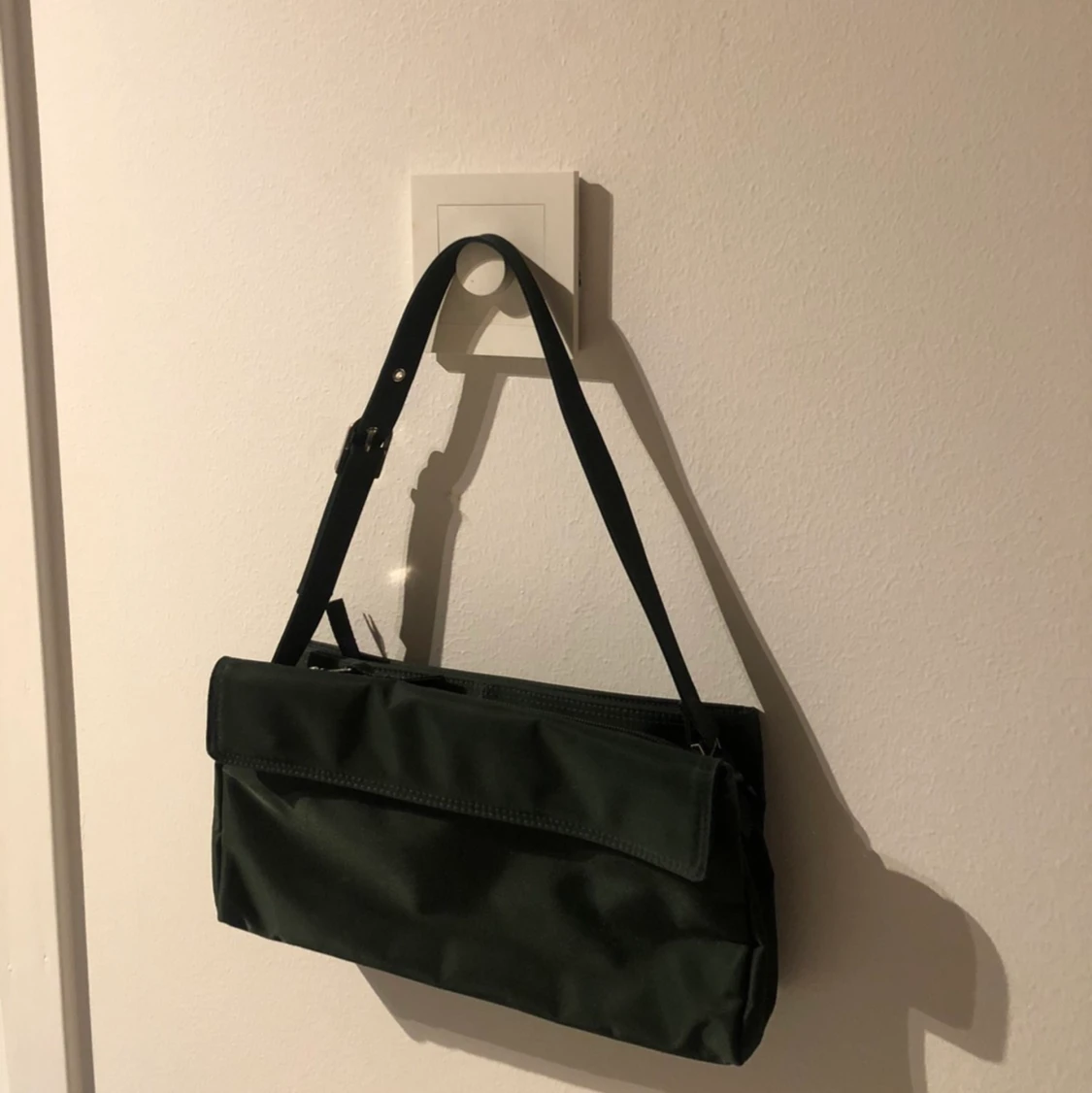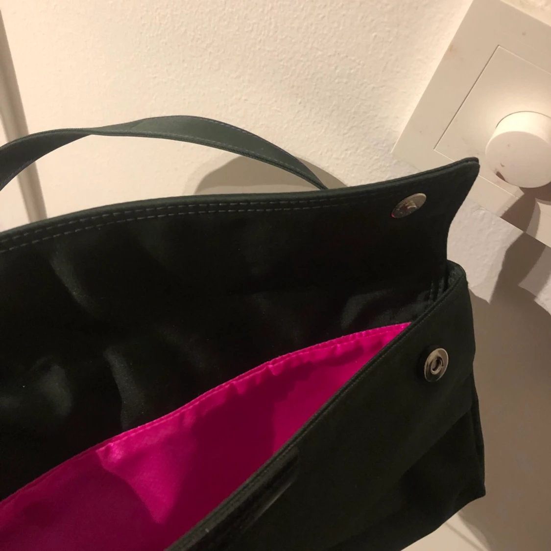 Jättefin mörkgrön väska, väldigt praktisk. Rosa på insidan. Inga skador, aldrig använd men inga lappar kvar.