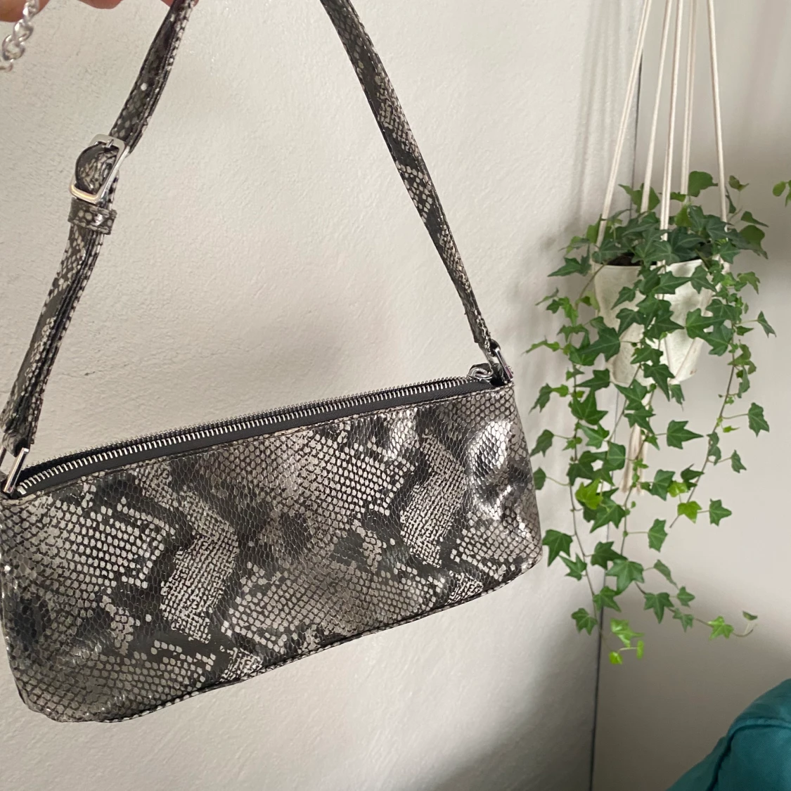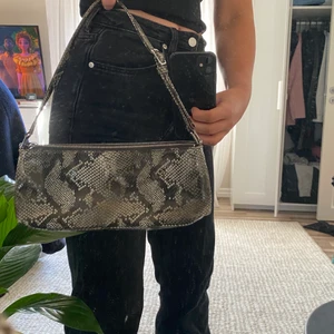 Fin baguette väska i ormskinn, säljer då den tyvärr inte kommer till användning. Den är aningen grönare än vad som syns på bilden.