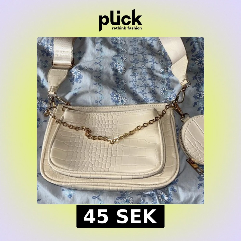 Söt beige axelväska med kedjedetaljer💕 - Snygg beige axelväska med en stilren design. Väskan har en axelrem med kedjedetaljer och en praktisk dragkedja upptill. Använd ett fåtal gånger och har tecken på användning men fortfarande i fint skick💕