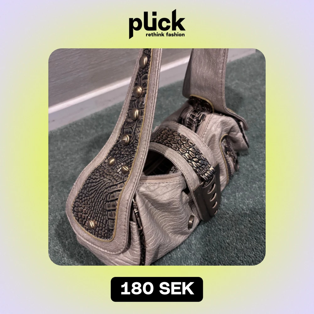 Säljer en cool beige axelväska med krokodilmönstrade detaljer och nitar. Väskan har flera dragkedjor och en unik design med metallspännen. Perfekt för att ge din outfit en unik touch! Leopardmönster inuti!!