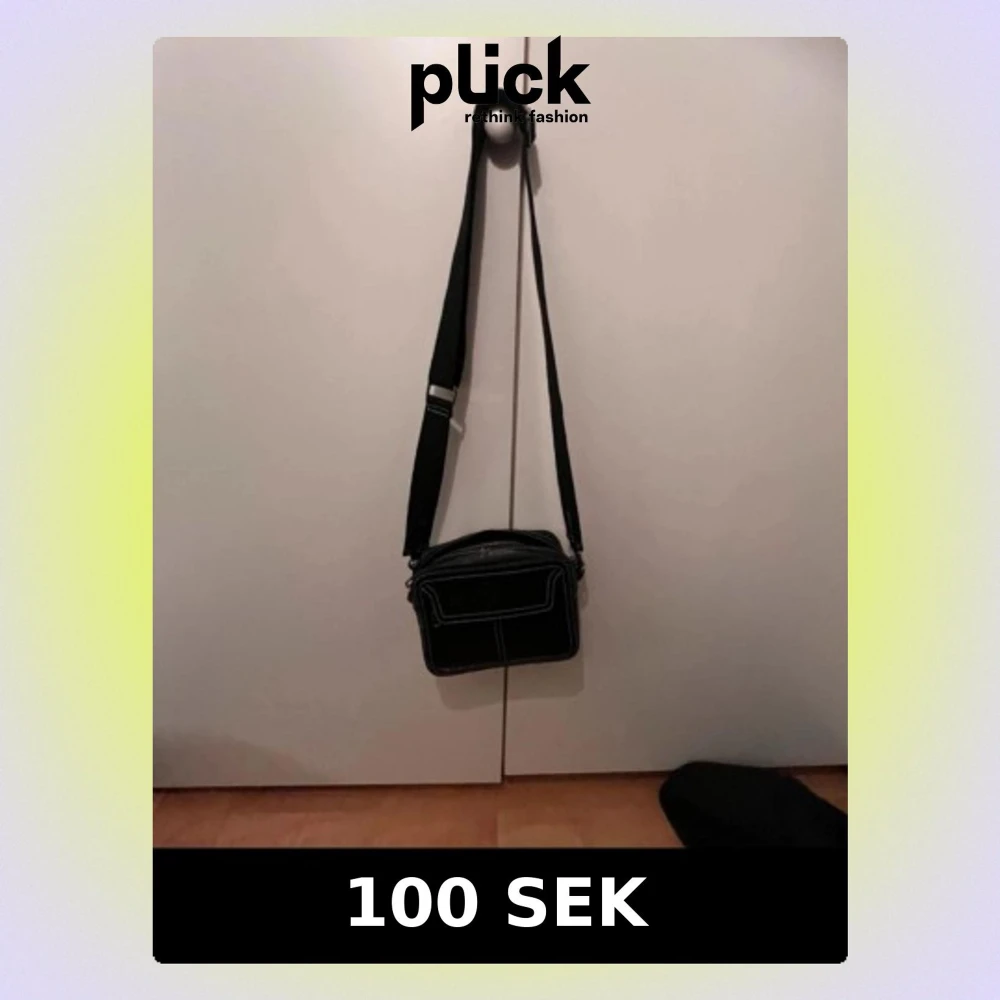 Snygg svart axelväska med justerbart band och tydliga vita kontrastsömmar. Väskan har en boxig form och dragkedja upptill samt en ficka framtill. Perfekt för att bära det viktigaste och passar till många olika stilar.