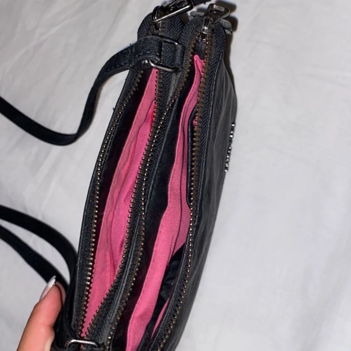En Björneborg väska. Svart läder. Två fack inga slitningar eller nått. Går att ändra band storlek. One size