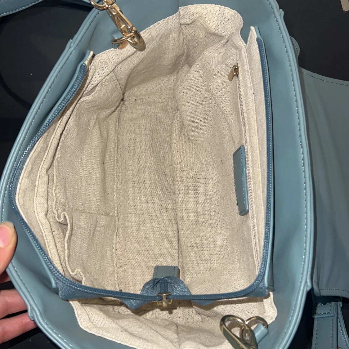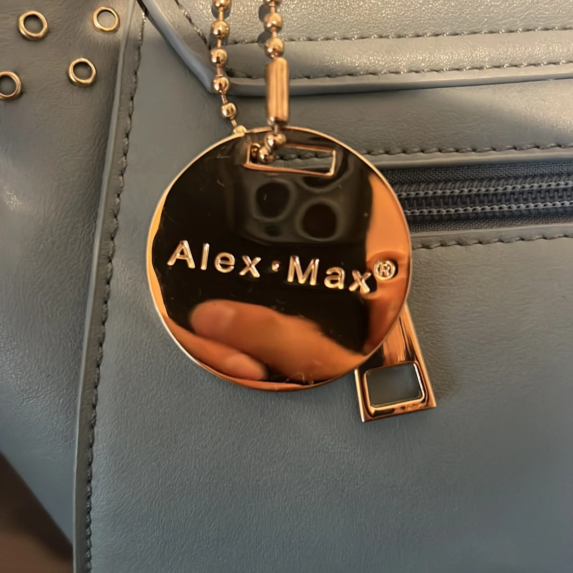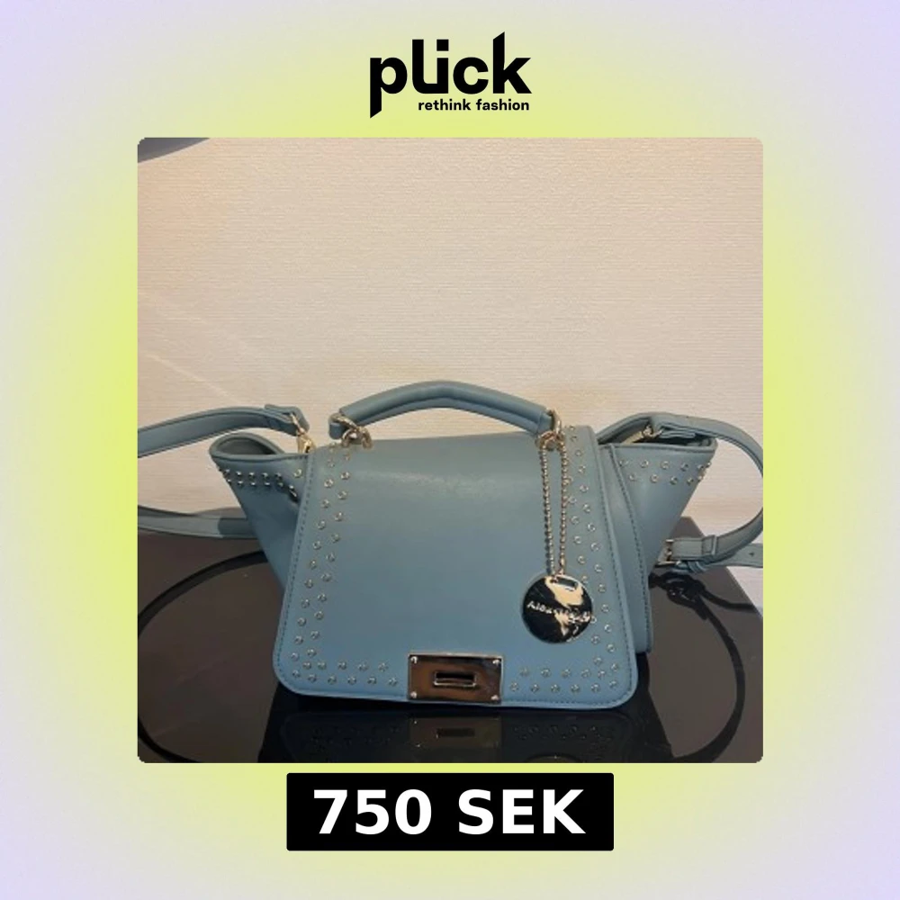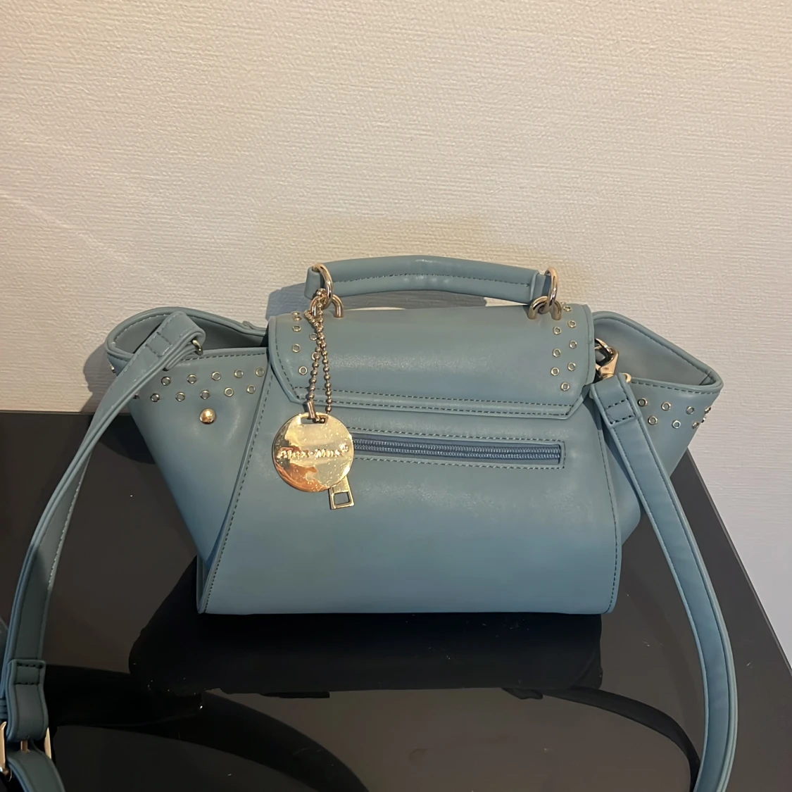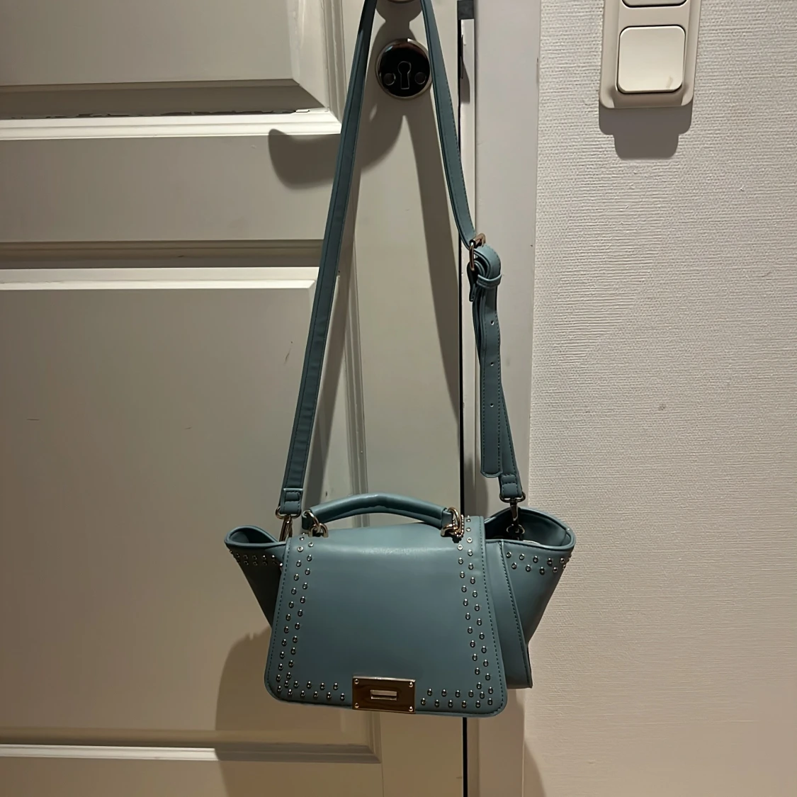 Snygg ljusblå axelväska från Alex Max med guldfärgade metalldetaljer. Väskan har både handtag och justerbar axelrem, samt praktiska fack inuti och dragkedja baktill. Perfekt för dig som vill ha en stilren men edgy look. Varan är i nyskick och aldrig använd💕Priset är diskuterbart!