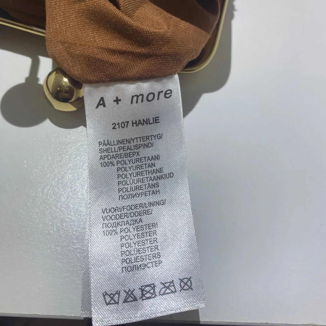 Säljer en superfin brun axelväska från A+more. Väskan har en klassisk design med en snygg guldfärgad ram och stängning. Den är gjord av polyuretan med ett foder av polyester, vilket gör den både stilren och hållbar. Perfekt för både vardag och fest!