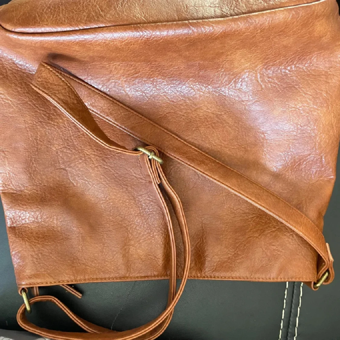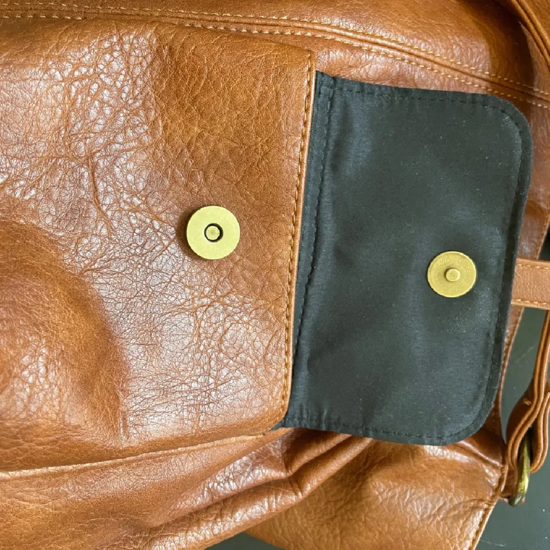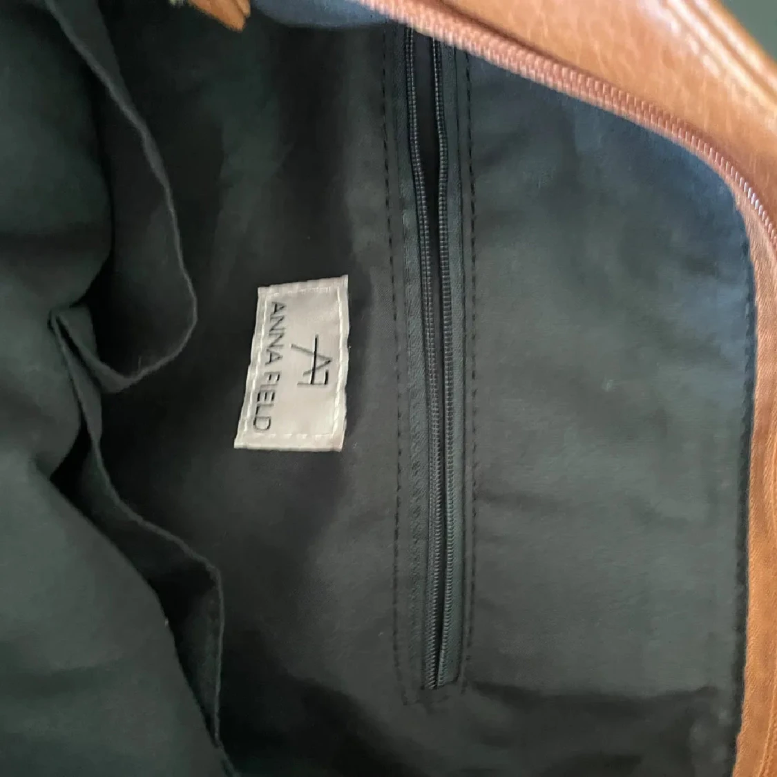 Snygg brun axelväska i skinn från Anna Field med två praktiska framfickor med magnetlås och justerbar axelrem. Insidan har svart foder, dragkedjefack och flera små fack för dina grejer. Perfekt storlek för allt du behöver ha med dig. Perfekt väska till skolan