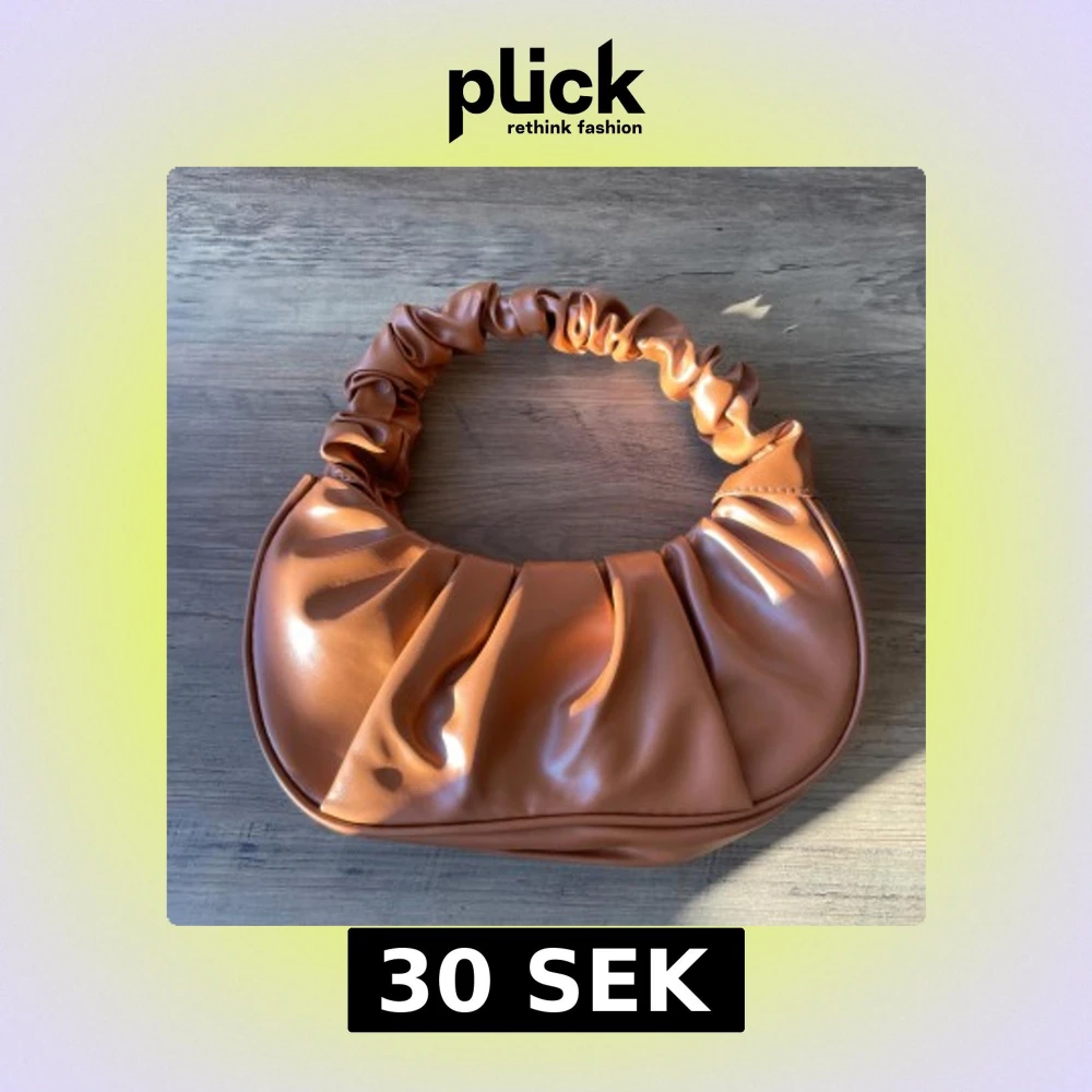Snygg brun axelväska i syntetmaterial med rynkad axelrem.