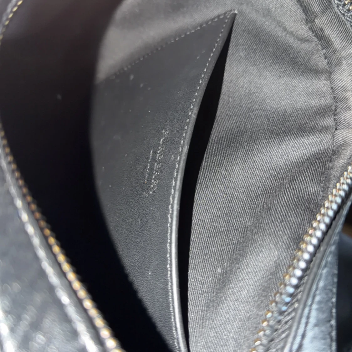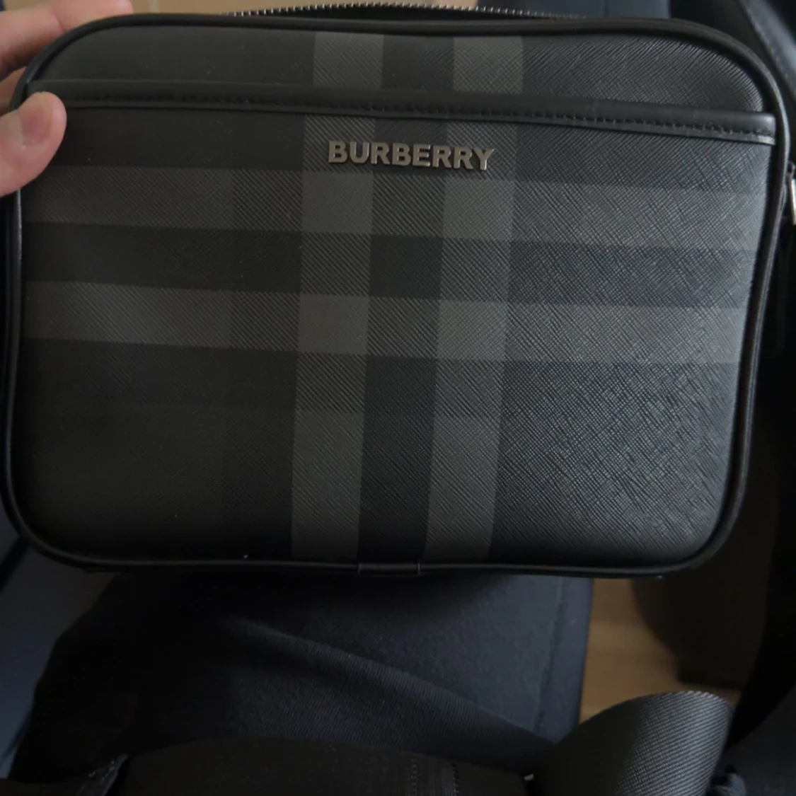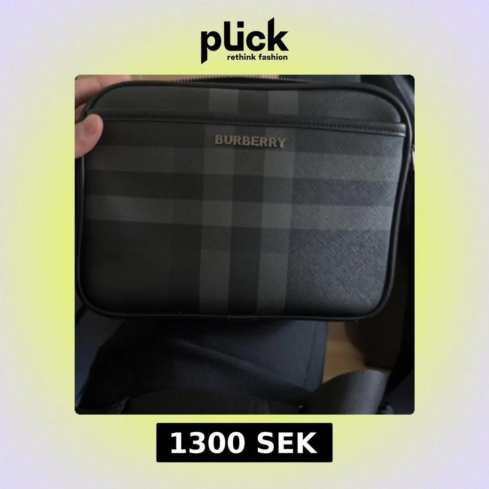Snygg svart axelväska från Burberry med klassiskt rutigt mönster i mörka toner. Väskan har justerbar axelrem och dragkedja upptill. Tillverkad i skinn med stilren metallogo framtill och praktiskt innerfack. Perfekt för dig som vill ha en clean och lyxig look.