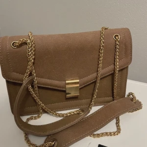 Jätte fin brun väska i fint skick dubbla guld kedja.