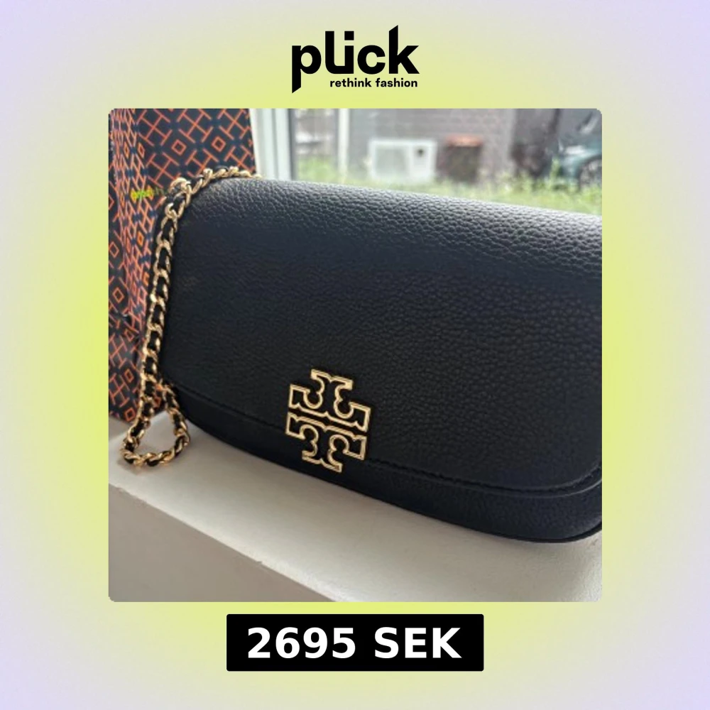 Stilren svart axelväska från Tory Burch i äkta skinn med guldfärgad kedja och ikonisk logga framtill. Väskan har en klassisk, rundad form och magnetlås. Perfekt storlek för det viktigaste och snygg att bära över axeln.