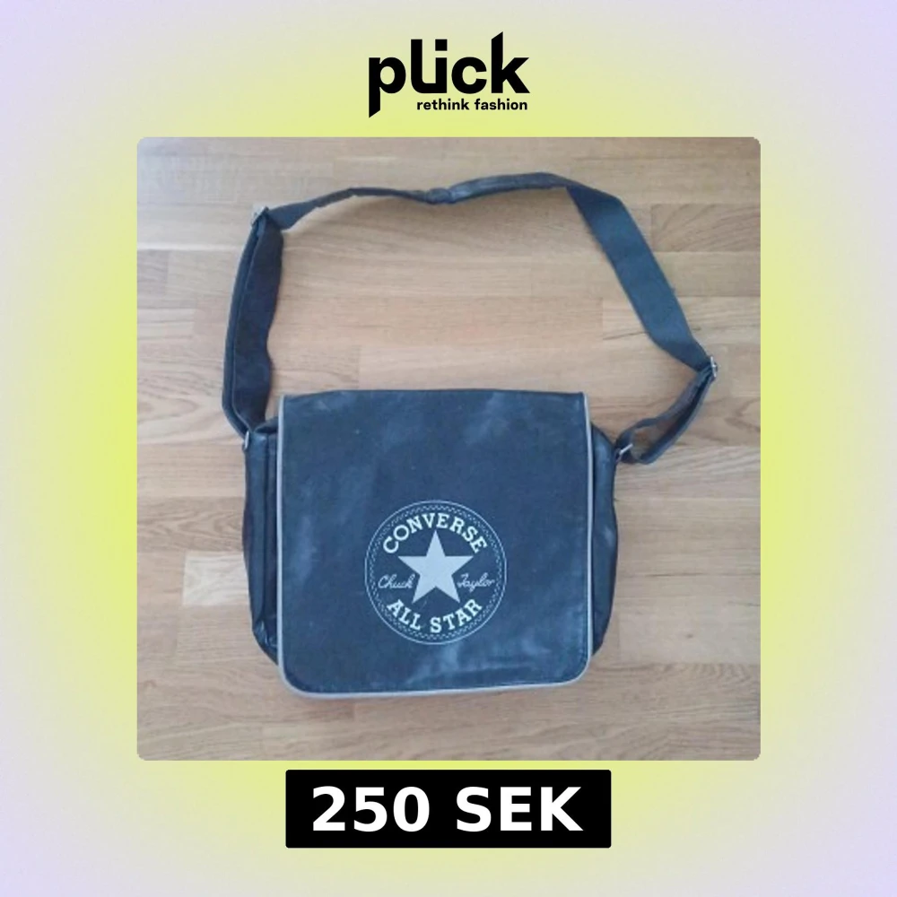 Säljer en svart axelväska från Converse med det klassiska Chuck Taylor All Star-logotypen på framsidan. Väskan har ett justerbart axelband och flera fack för praktisk förvaring. Perfekt för vardagsbruk eller skola.