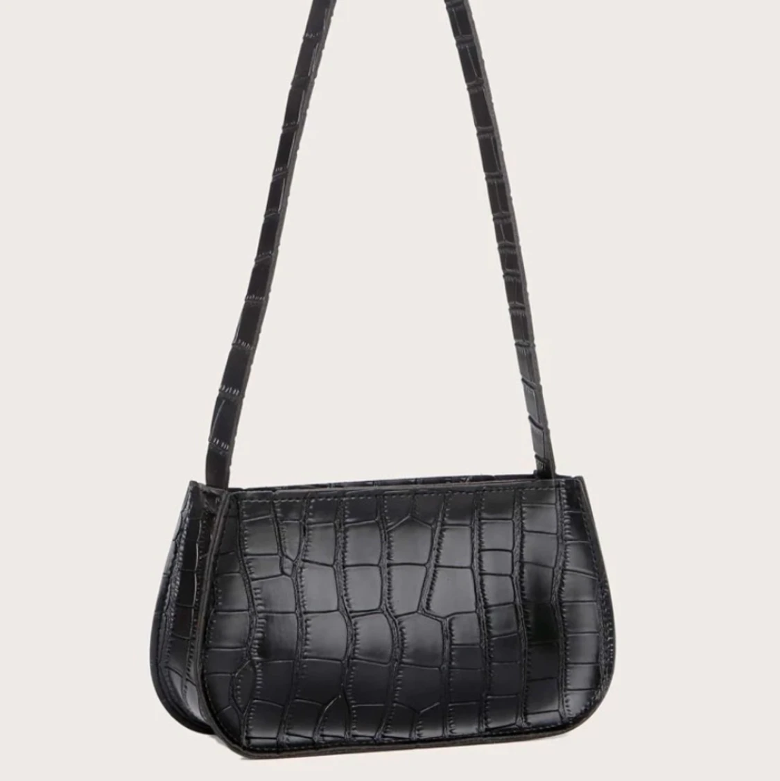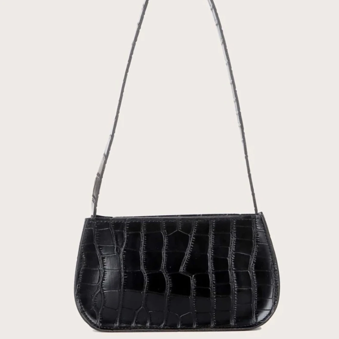 En svart axelväska med ormskinnsmönster i nyskick! Priset kan diskuteras:)