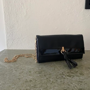 Snygg liten svart crossbody väska med dragkedja på insidan. Guldiga detaljer.