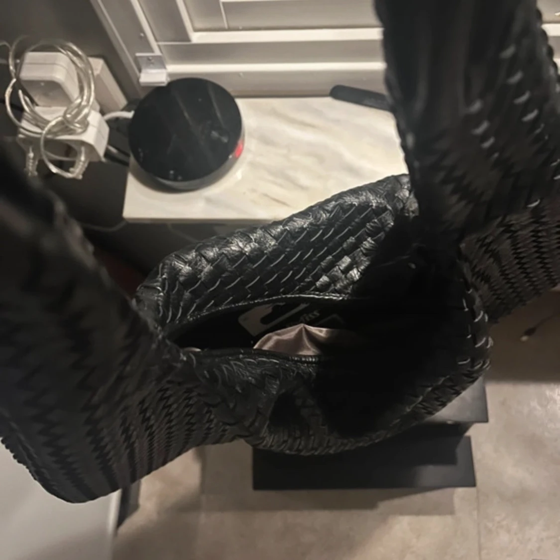 Snygg svart axelväska med flätat mönster. Perfekt för skolan då den är reaktivt stor och har utrymme för allt som behövs! Den är köpt för 700kr och använd en gång❤️