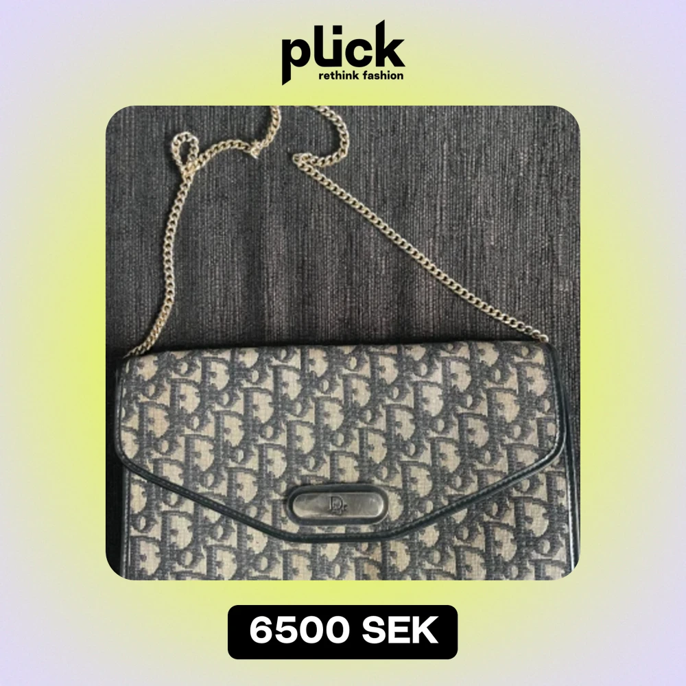 Christian Dior, väska. Logomönstrad canvas med skinndetaljer. Axelremskedja i guldfärgad metall. Perfekt till balen! Märkt "Christian Dior MADE IN FRANCE". 28 x 18 x 4 cm. Köpt på tradera Helhetsintrycket är gott. Smärre slitage. Tryckknapp funge