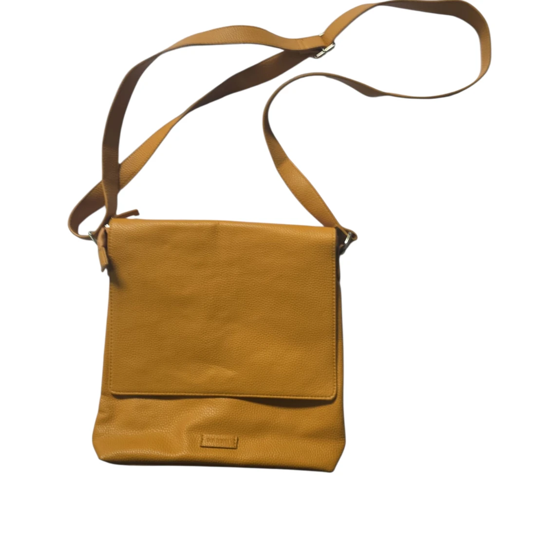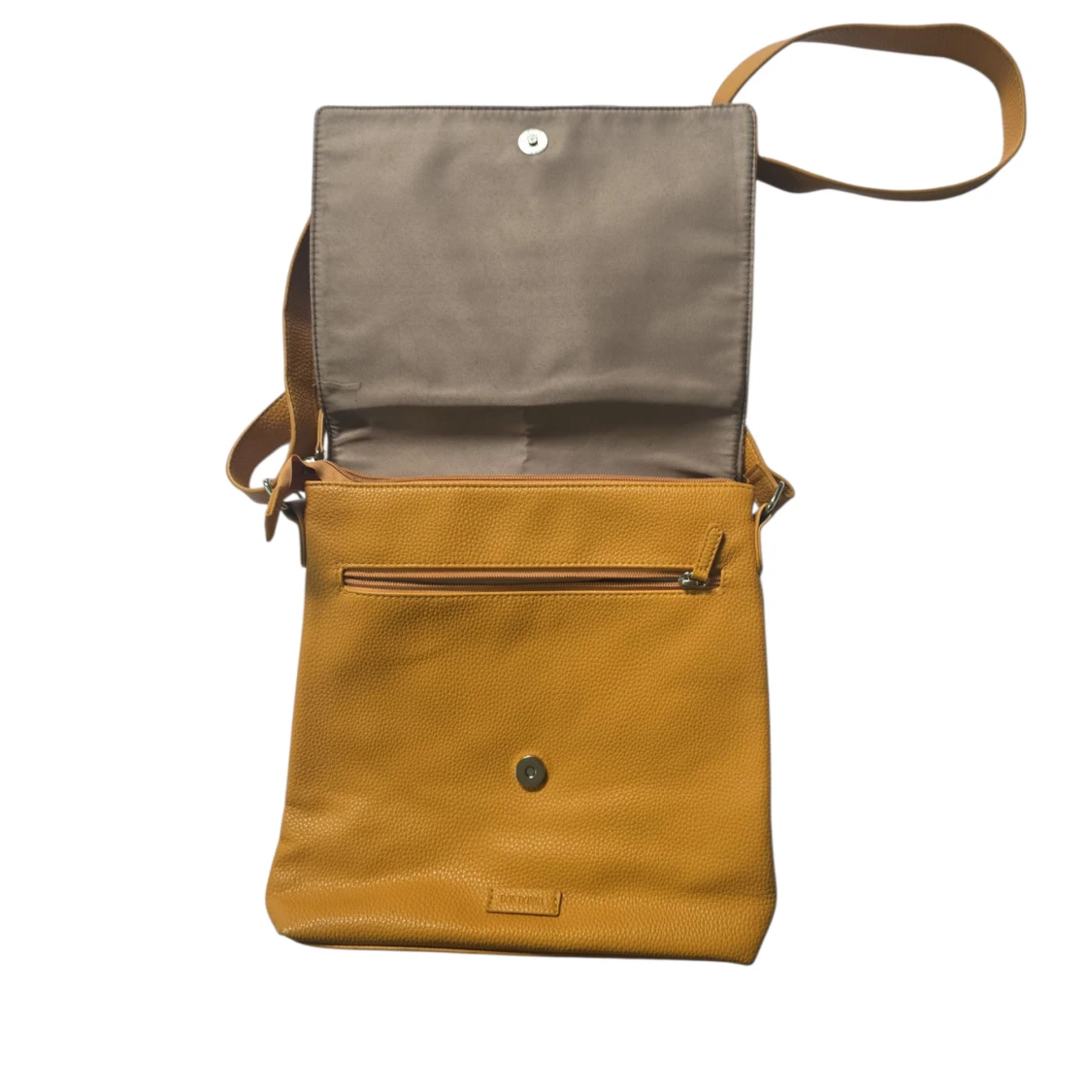 Snygg gul axelväska i skinn med justerbart axelband och lock med magnetknäppning. Väskan har en stilren, fyrkantig form och ett praktiskt innerfack med dragkedja. Perfekt för dig som vill ha en färgklick till din outfit.