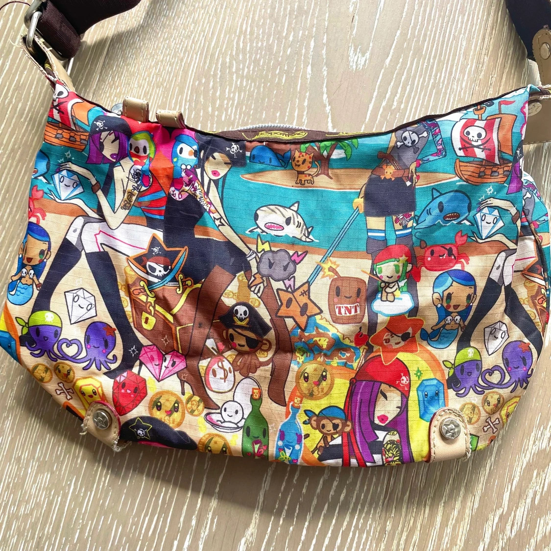 !-50%!Snygg flerfärgad axelremsväska från Tokidoki med tryck och coola animerade tjejer! Fint skick, lite smutsig på ena sidan (se sista bild) men kan gå bort i tvätt! Mycket utrymme, man får plats med mer än vad man tror! MÅTT// Bredd-30cm Höjd-22cm