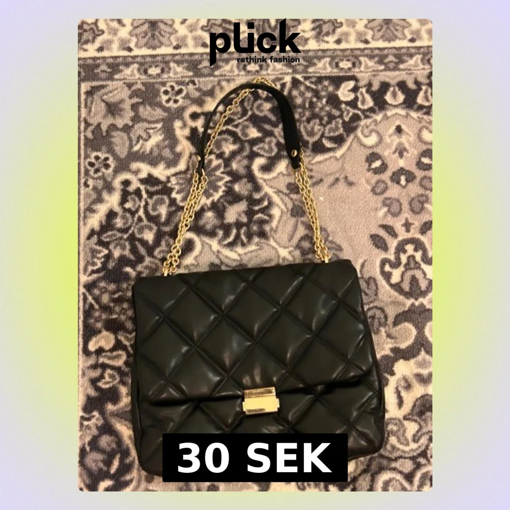 Svart läder väska me guld logga - Pris kan diskuteras vid snabb affär då ja ska åka iväg 31 dec. Använd men i bra skick. Behövt knyta kedjan inne i väskan så att axelbandet ska vara i rätt storlek.