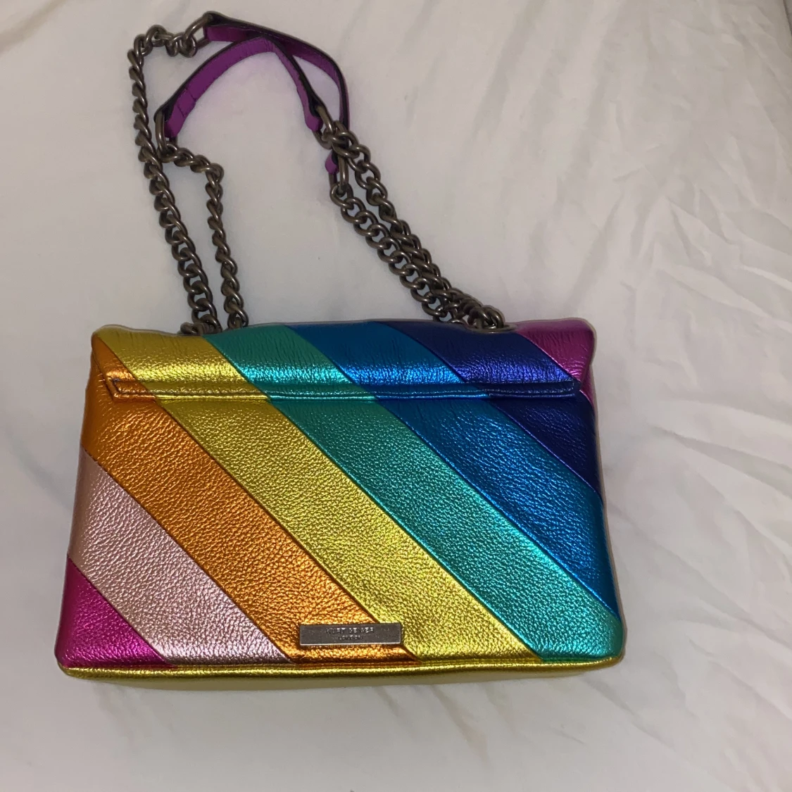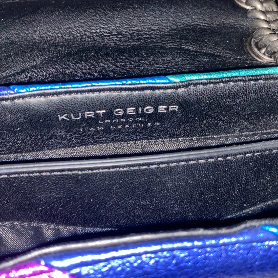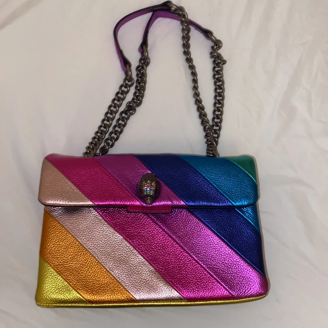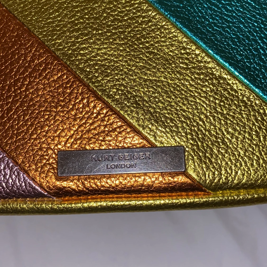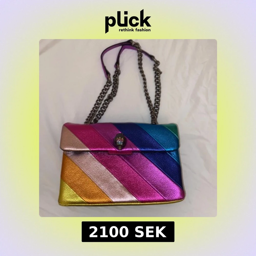As snygg väska från Kurt Geiger i regnbågsmönster. Den stora storleken så den är jätte bra att ha om man ska ha med sig saker. Den är helt i ny skick och det finns inget tecken på användning. Lyxig men fortfarande lite utstickande och inte bara en tråkig väska som smälter in och ser ut som den alla har. Perfekt för att liva upp vilken outfit som helst! Priser är såklart diskuterbart💗