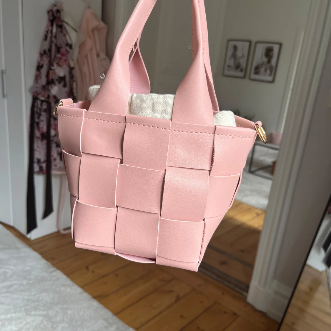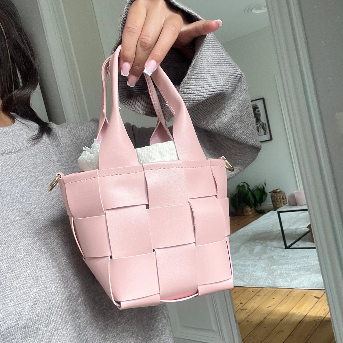 Rosa flätad handväska