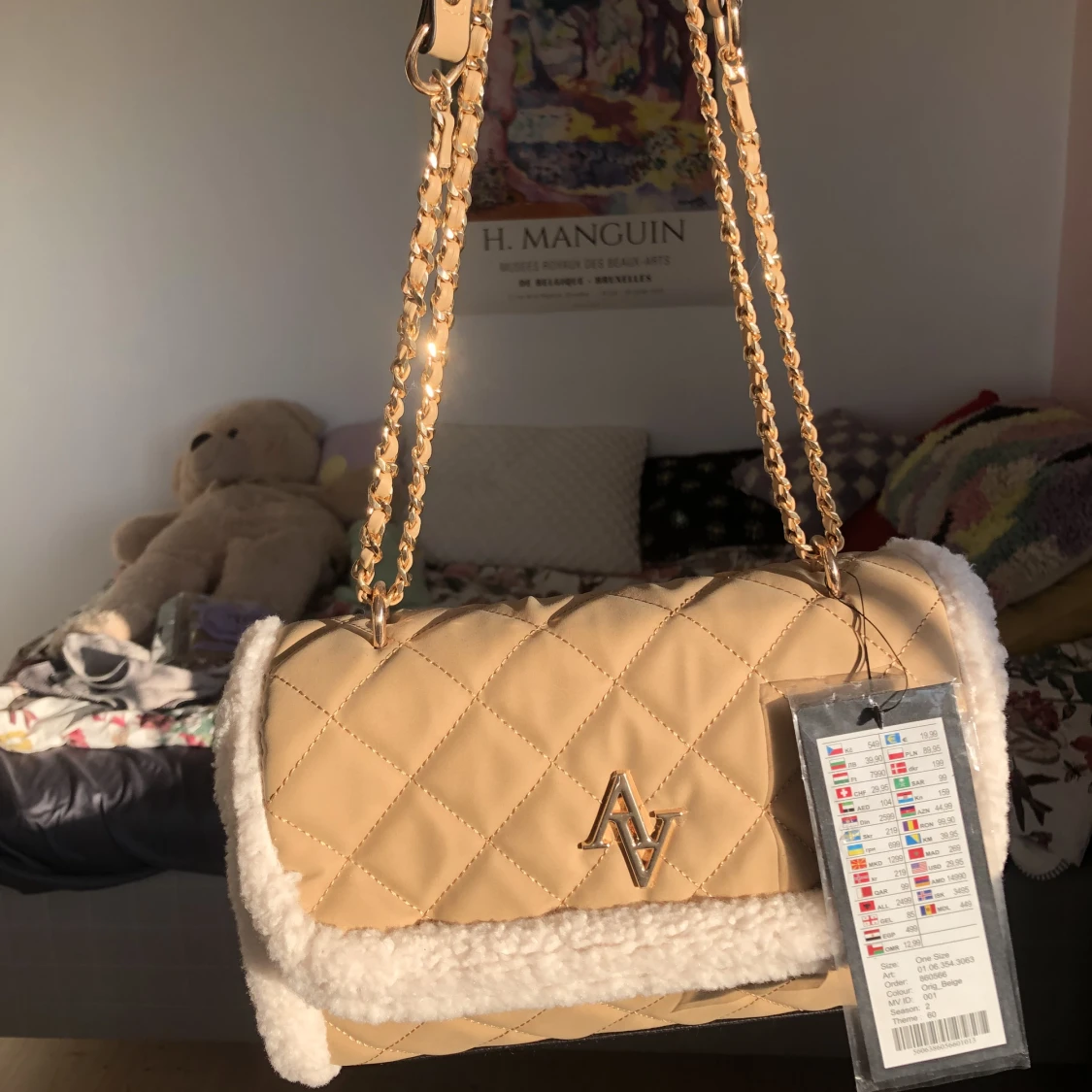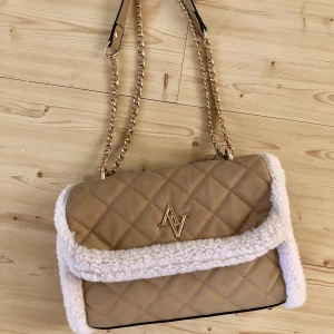 Säljer den här söta handväskan som är helt i nyskick då den helt enkelt inte kommer till användning. Den är aldrig använd och har prislappen kvar. Handtaget är justerbart (man kan välja att ha den kortare eller längre). Originalpris på väskan är 219 kr.