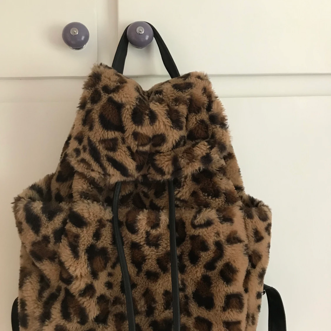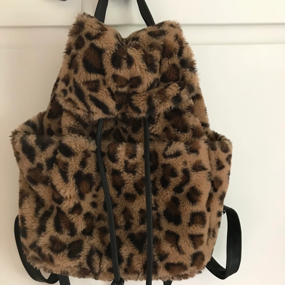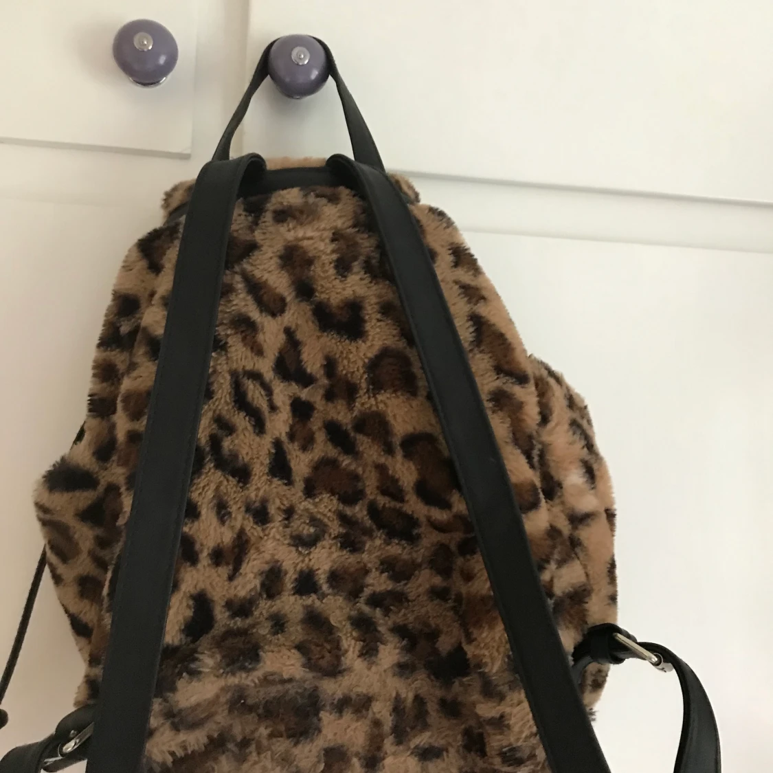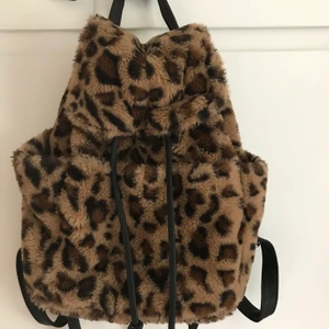En ryggsäck med leopardmönster. Den har en yttre ficka samt en inuti ryggsäcken. Bra för skola, rymmer dator och anteckningsbok! Supersöt men kommer inte till användning :(
