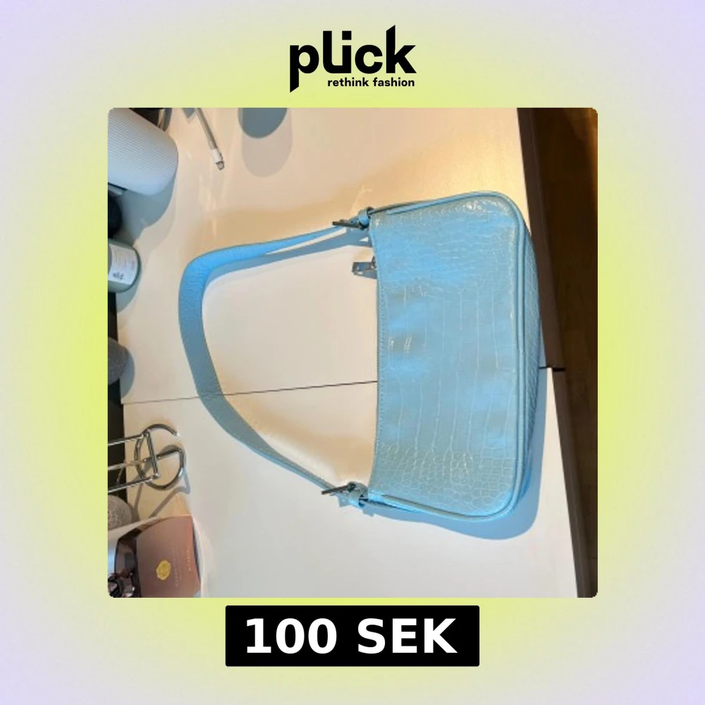 Säljer en ljusblå axelväska från Gina Tricot med croco-mönstrad yta i glansigt syntetmaterial. Väskan har en stilren, rektangulär form och stängs med dragkedja upptill. Perfekt storlek för det viktigaste och en snygg detalj till din outfit.