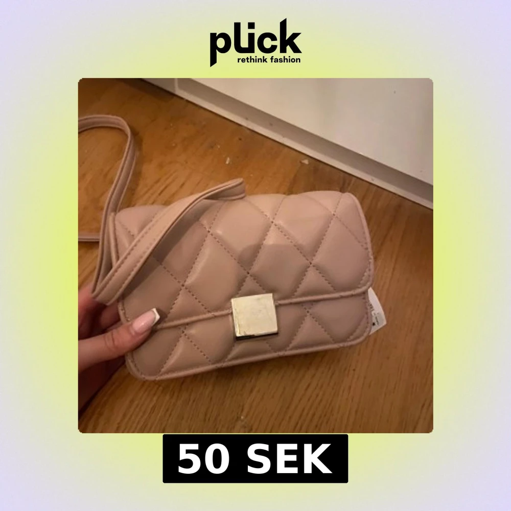 Säljer en stilren beige axelväska från Glitter. Väskan är quiltad med en elegant fyrkantig metallspänne framtill. Perfekt för att ge en touch av elegans till din outfit.