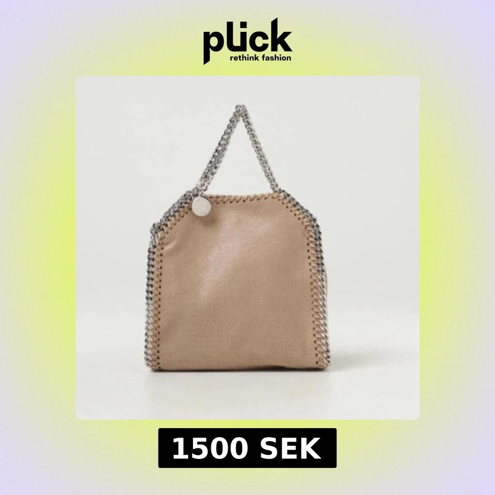 Snygg axelväska från Stella McCartney med kedjehandtag i silver och dekorativa kedjedetaljer längs kanterna, Storlek är mini.