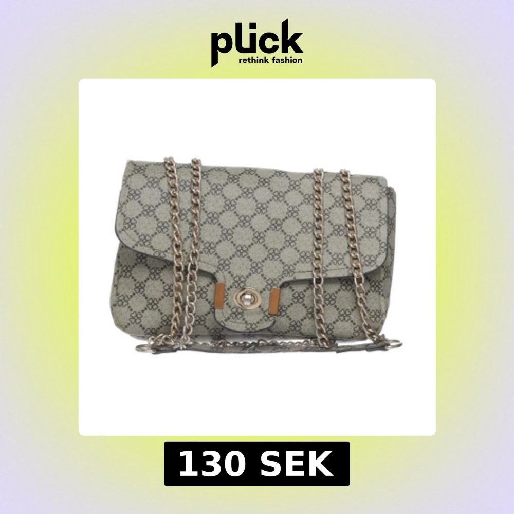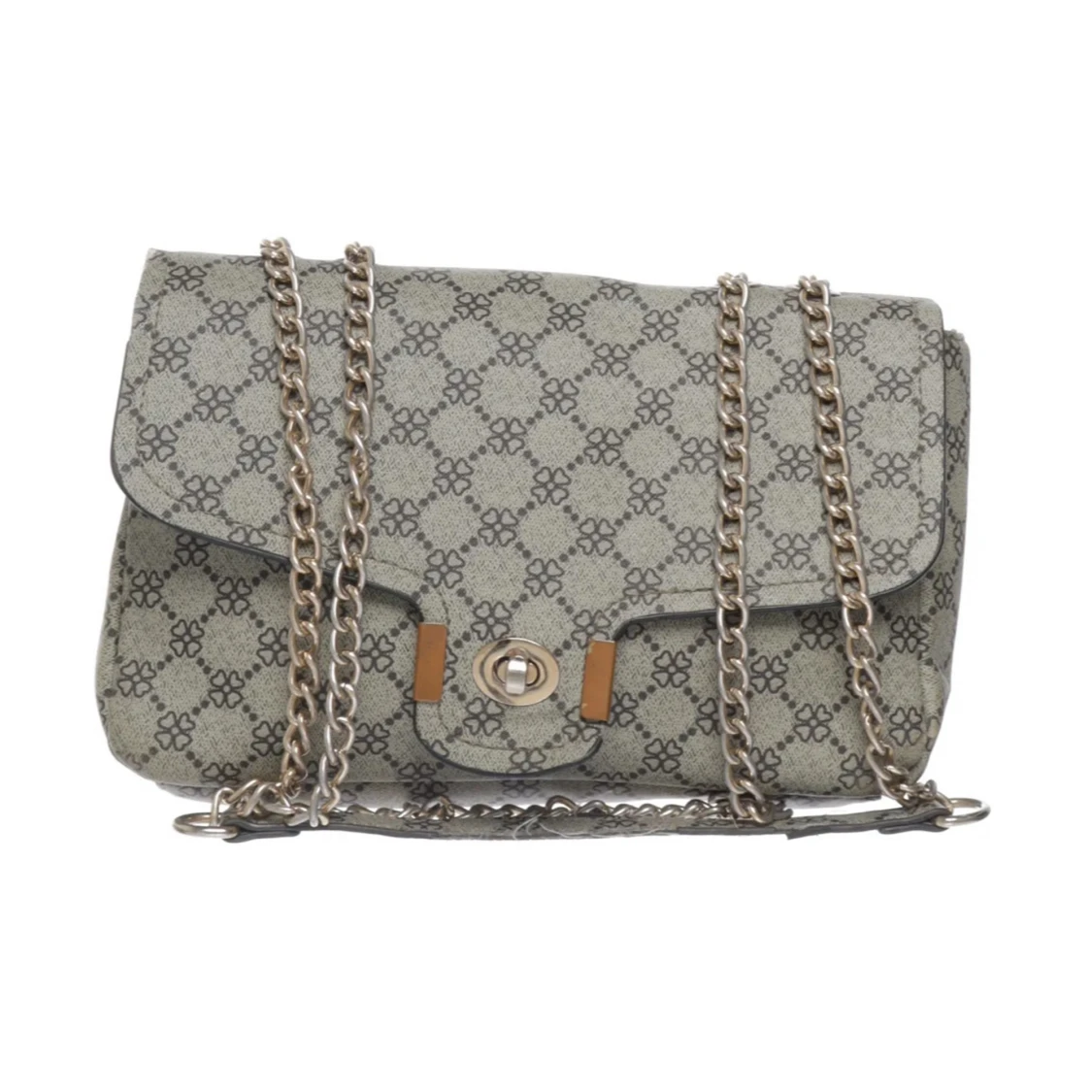Snygg axelväska i grått med klassiskt monogrammönster. Väskan har en kedjerem och ett vridlås framtill. Perfekt för dig som vill ha en ikonisk och trendig accessoar. [Bredd 31cm, Djup 6 cm, Höjd 20cm]