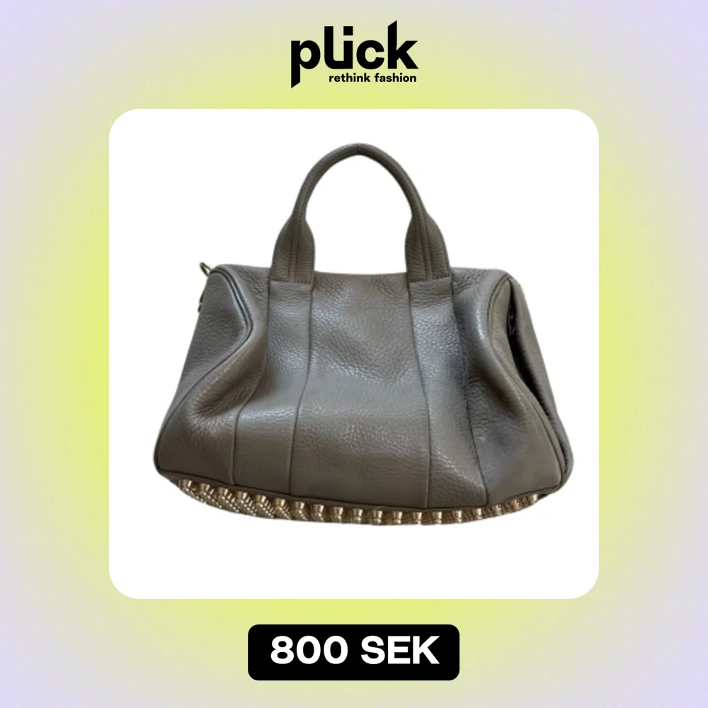 Säljer min Alexander Wang Rockie bag i grått skinn med guldfärgade nitar på undersidan. Väskan har två handtag och en dragkedja för att stänga den. Perfekt för både vardag och fest! ✨Använd men i fint skick!