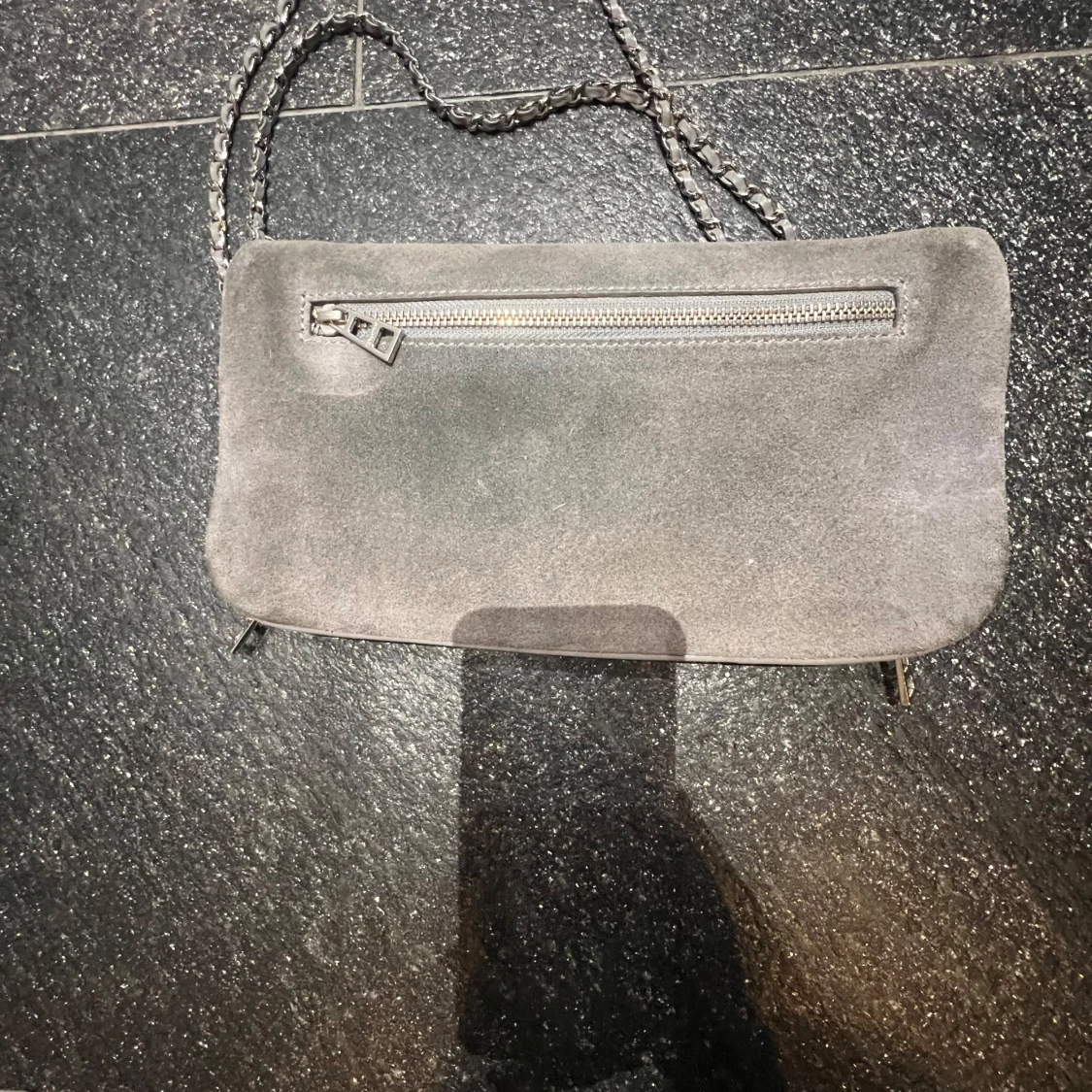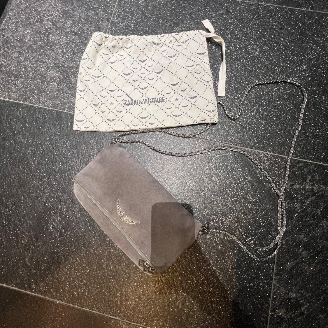 Snygg grå axelväska i mocka från Zadig & Voltaire med kedjerem och dragkedja. Perfekt för att ge din outfit en stilren touch. Väskan har en diskret logga och kommer med en praktisk dustbag. Köpte den begagnand men kom inte till användning.
