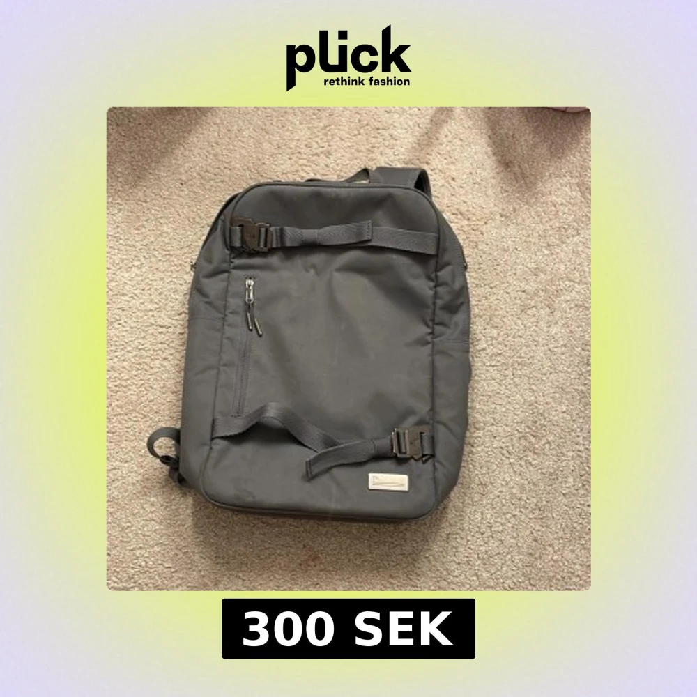 Säljer en stilren grå ryggsäck från Db med justerbara axelremmar och flera spännen för extra säkerhet. Väskan har en dragkedja och en praktisk ficka på framsidan. Perfekt för att bära med sig allt man behöver under dagen.