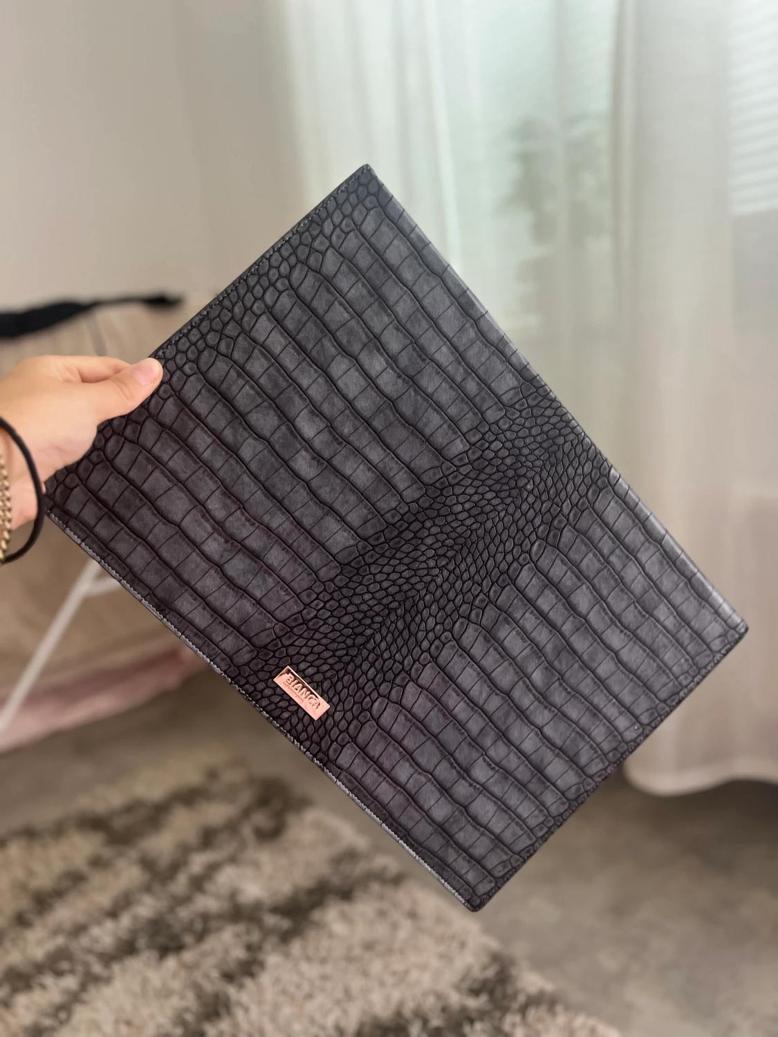 Ett datorfodral från Bianca Ingrossos märke ”By Bianca” . Använd fåtal gånger. I gott skick. Färgen är mörkgrå