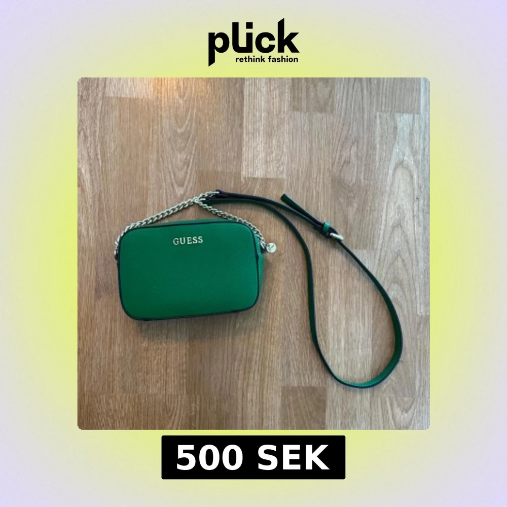 Snygg grön axelväska från Guess med silverfärgad kedja och justerbar axelrem. Väskan har ett stilrent utseende med Guess-logga framtill och dragkedja upptill. Perfekt för att lyfta din outfit. Aldrig använd.