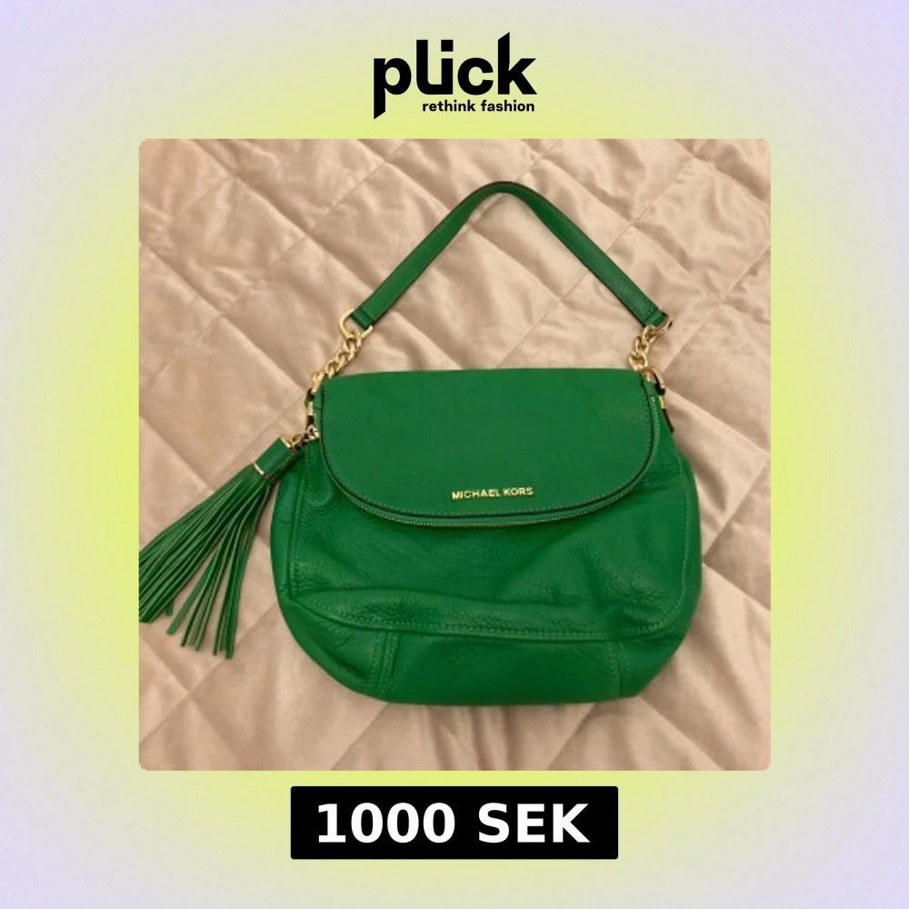 Snygg grön axelväska från Michael Kors i skinn med gulddetaljer och en dekorativ frans. Väskan har en praktisk dragkedja och en justerbar axelrem. Perfekt för att ge din outfit en färgklick!