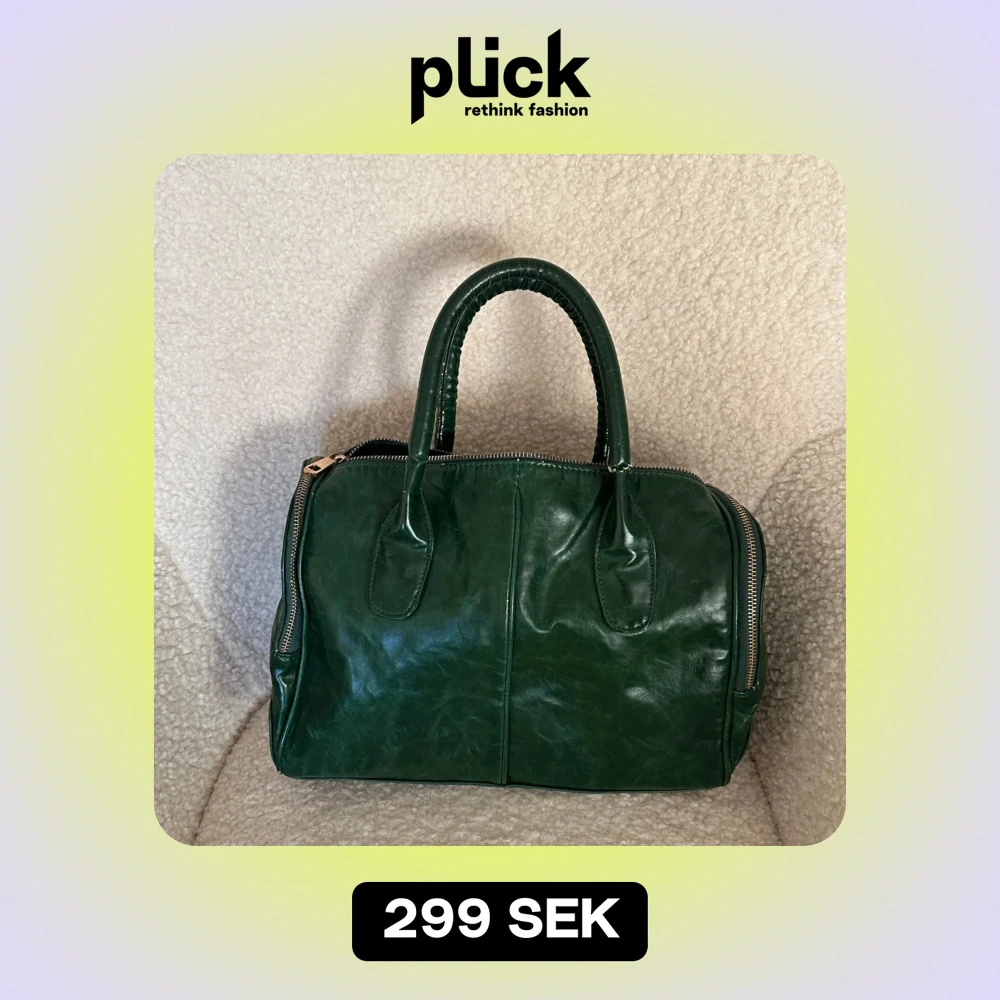 Grön vintageväska i äkta läder från DON DONNA. Den är i ganska bra skick och den har använts väldigr få gånger. Den har ett par repor på handtaget, men annars i bra skick.