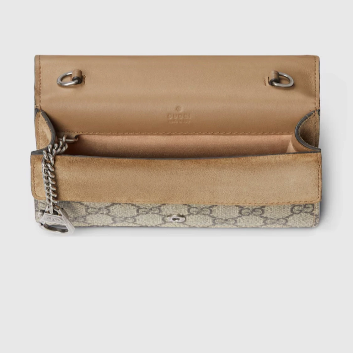 Säljer en snygg Gucci axelväska i mycket bra skick. Väskan har det klassiska Gucci-monogrammet i beige och brunt, med en elegant kedjerem och en dekorativ spänne framtill. Perfekt för både vardag och fest! 👜✨