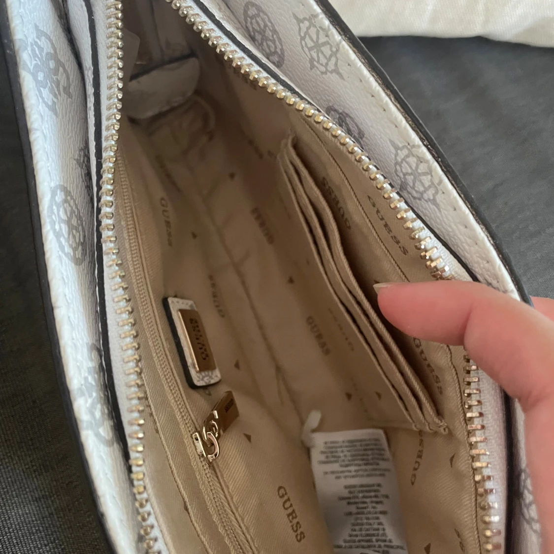 Väskan är i gott skick, använd cirka 3 gånger och köpte den runt mars. (Säljer eftersom jag har en brun och jag använder aldrig den vita!) Köpte den för runt 1300 och säljer den för 950! Jag har fortfarande kvar det guldfärgade kedjebandet på väskan också💓💓💓
