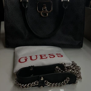 Svart Guess väska, passar till vilket tillfälle som helst och även storleken är jättebra! Använt ett par gånger och säljs pga att den inte används mer!
