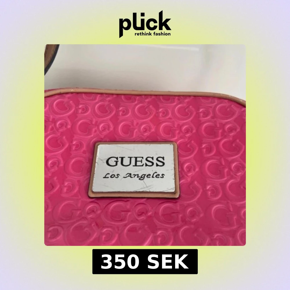 Säljer en snygg rosa axelväska från Guess med präglat G-mönster över hela väskan och en beige justerbar axelrem. Väskan har en metallbricka framtill med Guess Los Angeles-loggan. Perfekt storlek för det viktigaste.
